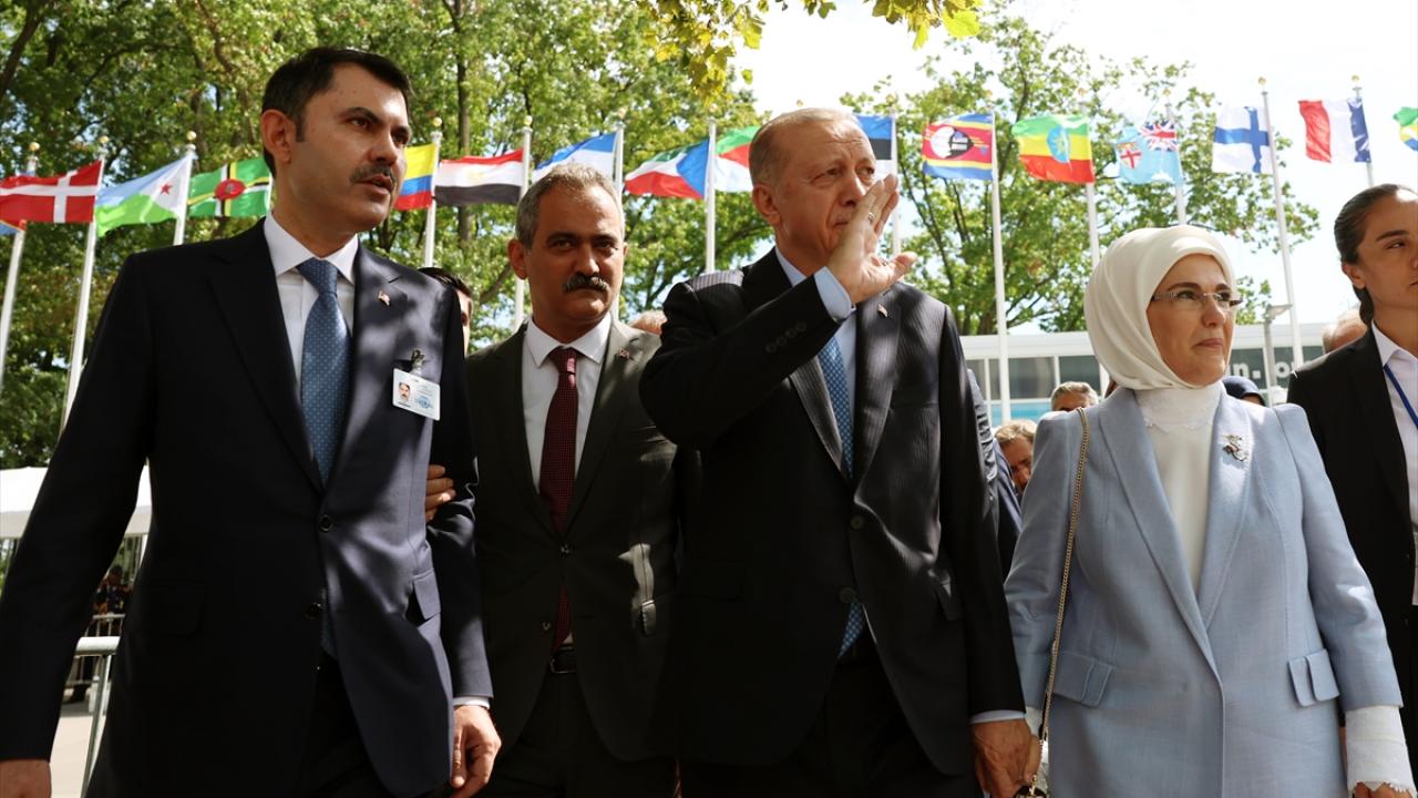 Zirvenin ardından BM çıkış kapısına yönelen Cumhurbaşkanı Erdoğan o sırada BM Genel Sekreteri Antonio Guterres ile Sıfır Atık İyi Niyet Beyanı`nı imzalamak üzere BM binasında bulunan eşi Emine Erdoğan ile karşılaştı.