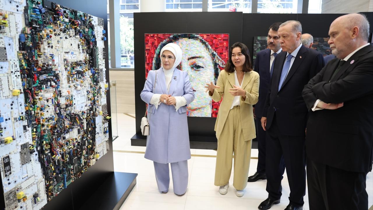 Erdoğan çifti, Türkevi'nde açılan atık sergisini gezdi