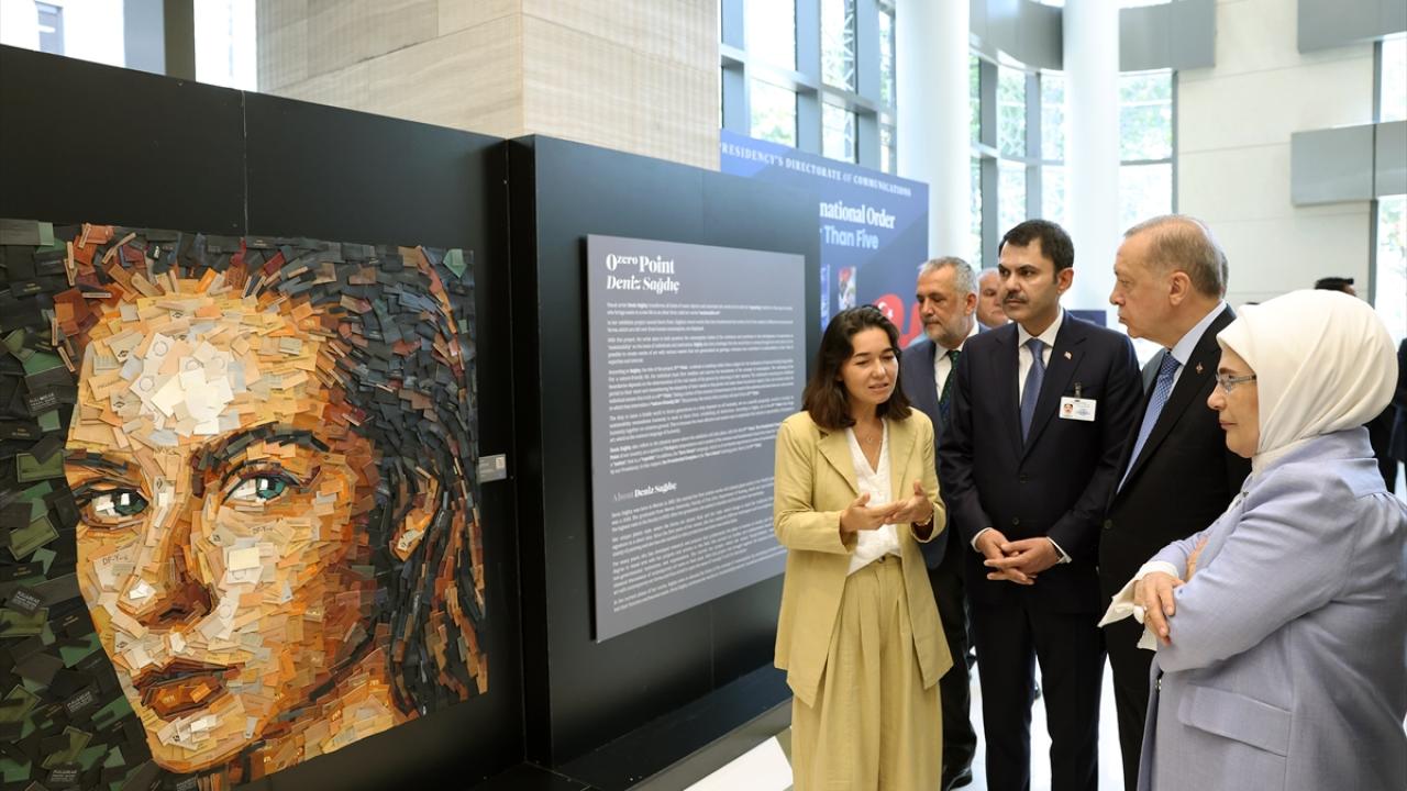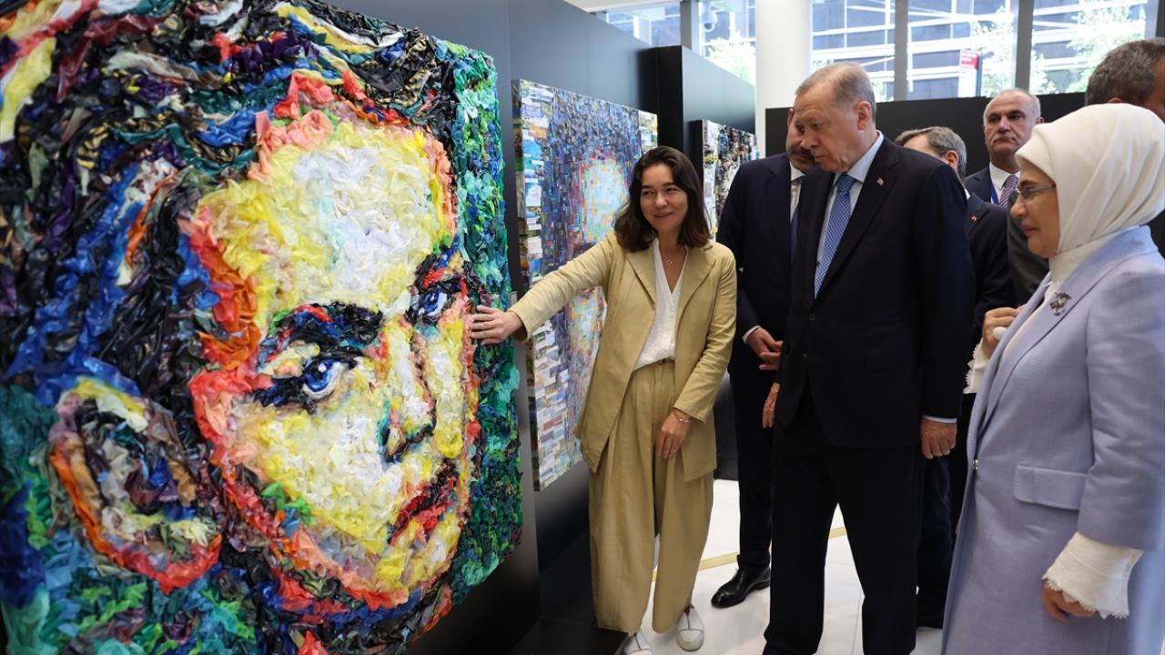 Birleşmiş Milletler (BM) 77. Genel Kurulu'na katılmak üzere ABD'de bulunan Cumhurbaşkanı Recep Tayyip Erdoğan, eşi Emine Erdoğan'la Türkevi'ne yürüyerek burada açılan atık sergisini gezdi, eserler hakkında sanatçı Deniz Sağdıç'tan bilgi aldı.