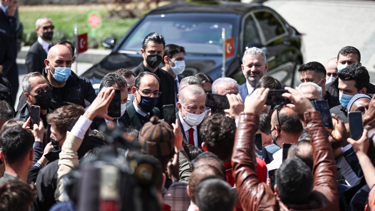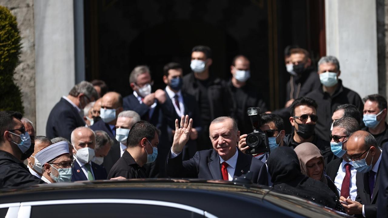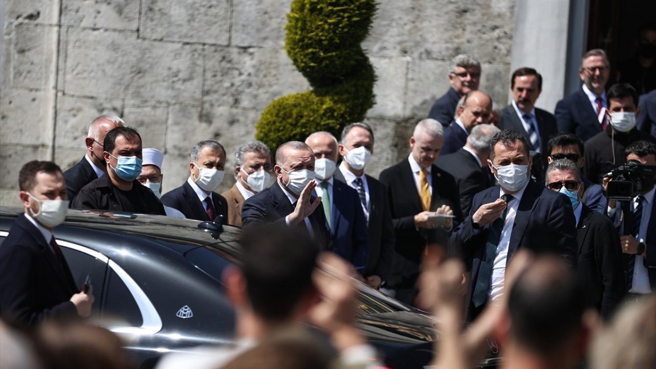 Cuma namazını burada kılan Erdoğan`a, TBMM Başkanı Mustafa Şentop, Kültür ve Turizm Bakanı Mehmet Nuri Ersoy, Sanayi ve Teknoloji Bakanı Mustafa Varank, AK Parti Genel Başkanvekilleri Binali Yıldırım ve Numan Kurtulmuş, Cumhurbaşkanlığı İletişim Başkanı Fahrettin Altun, Cumhurbaşkanlığı Sözcüsü İbrahim Kalın, AK Parti Genel Başkan Yardımcısı Nurettin Canikli, Diyanet İşleri Başkanı Prof. Dr. Ali Erbaş, YÖK Başkanı Prof. Dr. Erol Özvar, İstanbul Valisi Ali Yerlikaya, bazı milletvekilleri ve AK Parti İl Başkanı Osman Nuri Kabaktepe de eşlik etti.