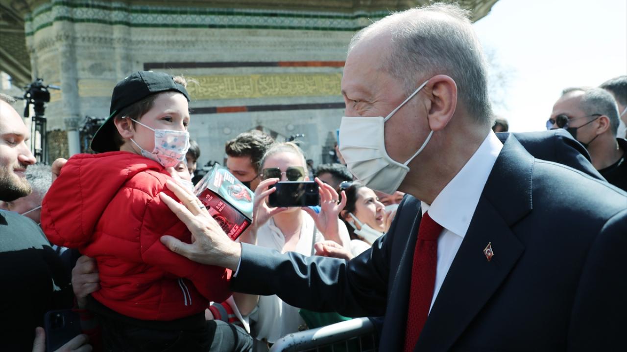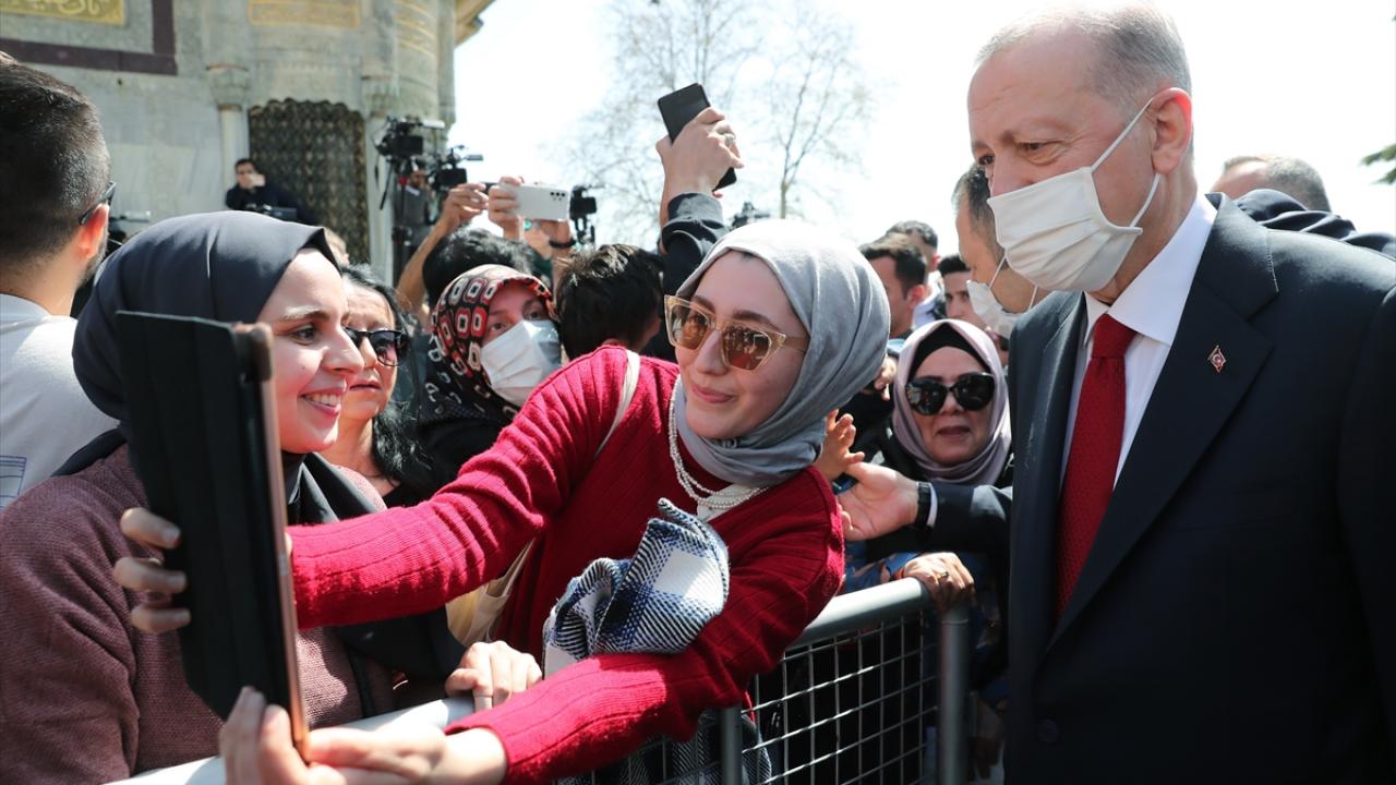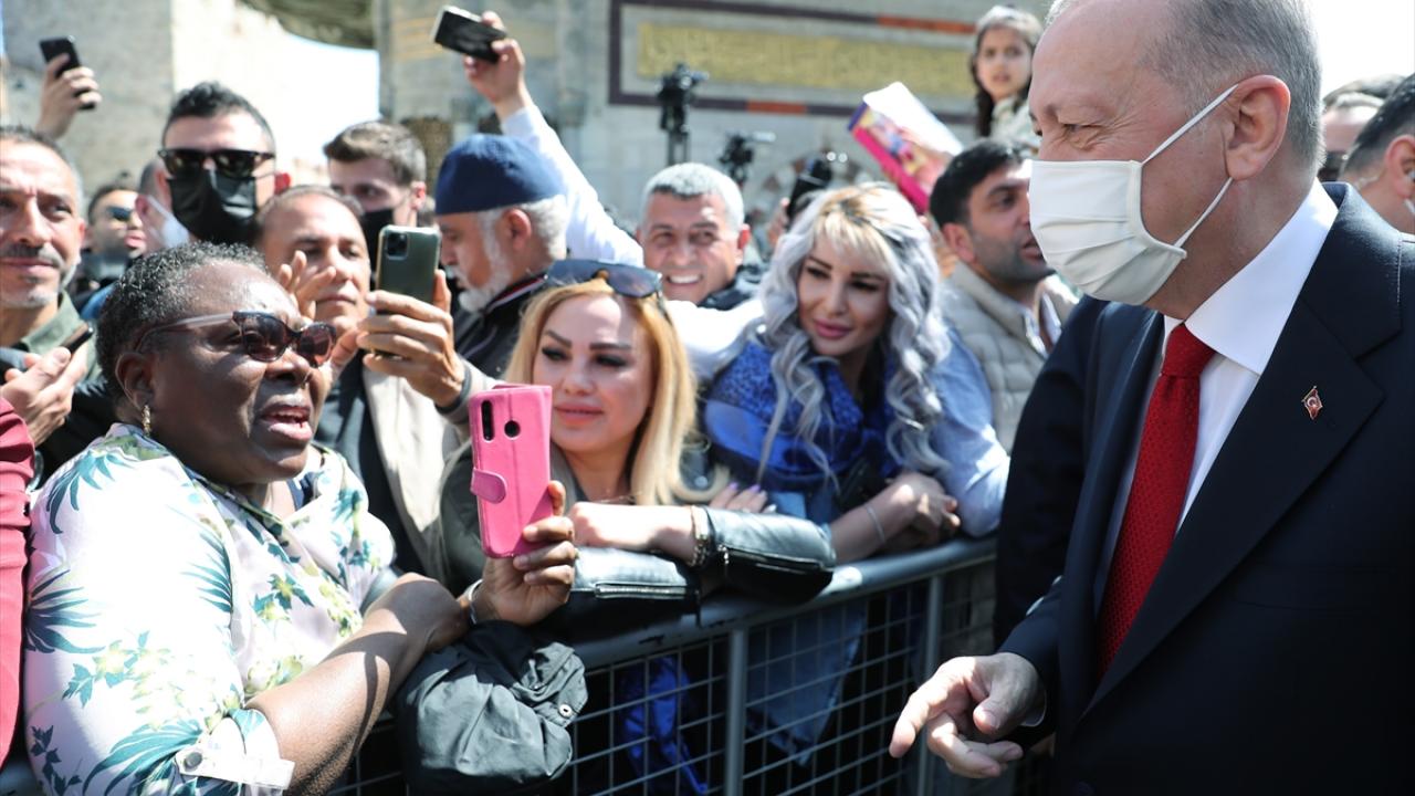Erdoğan, cami girişinde kendisine seslenen iki kadınla bir süre sohbet etti. Taleplerini ileten kadınlar, Erdoğan ile fotoğraf çektirdi.