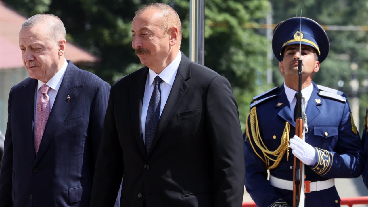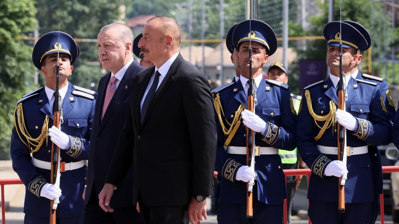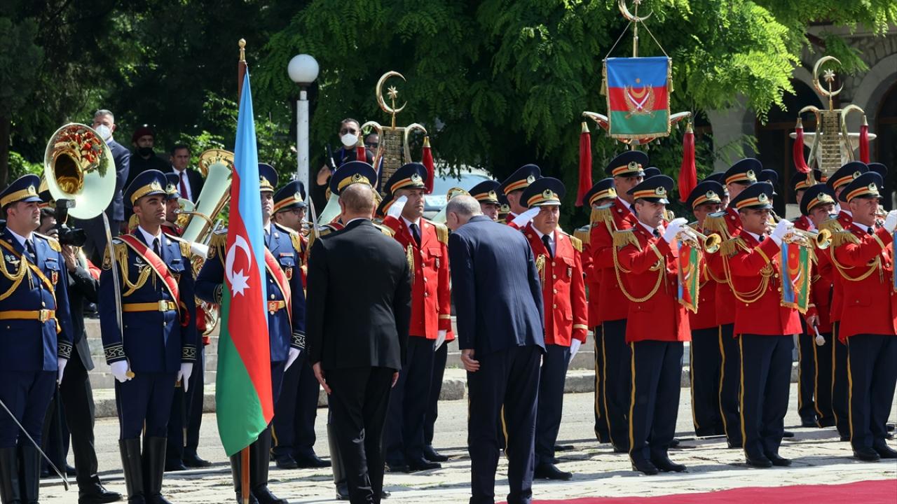 Erdoğan ve Aliyev`in tören alanındaki yerlerini almasının ardından iki ülke milli marşları çalındı.