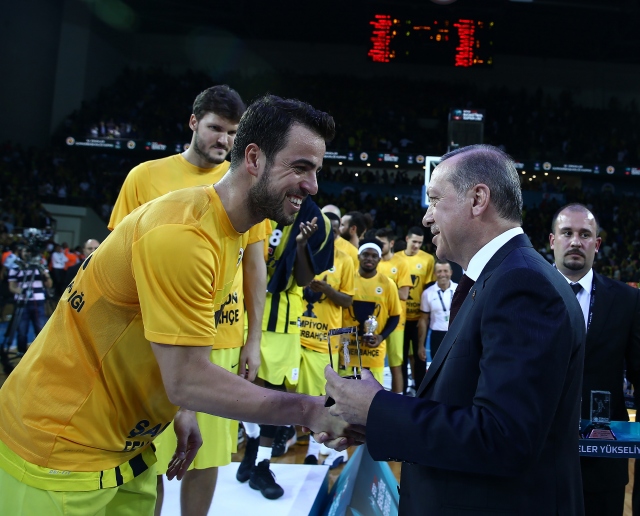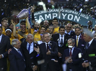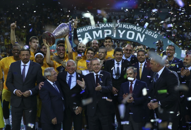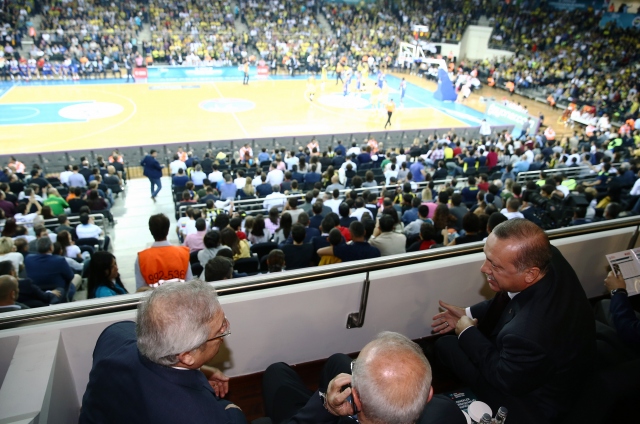 Cumhurbaşkanı Recep Tayyip Erdoğan, Anadolu Efes ile Fenerbahçe arasında Ankara Arena Spor Salonu'nda oynanan 32. Erkekler Cumhurbaşkanlığı Kupası maçını izledi. Fenerbahçeli oyuncular ödüllerini ve kupayı Cumhurbaşkanı Erdoğan'ın elinden aldı.