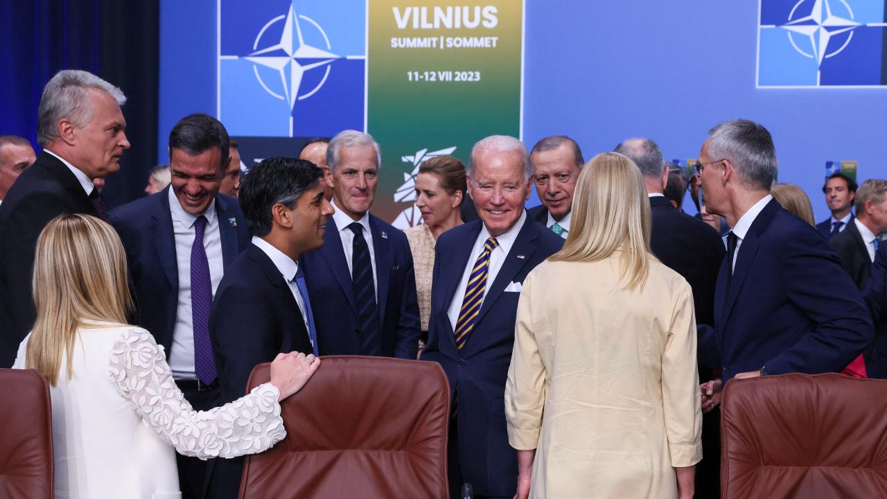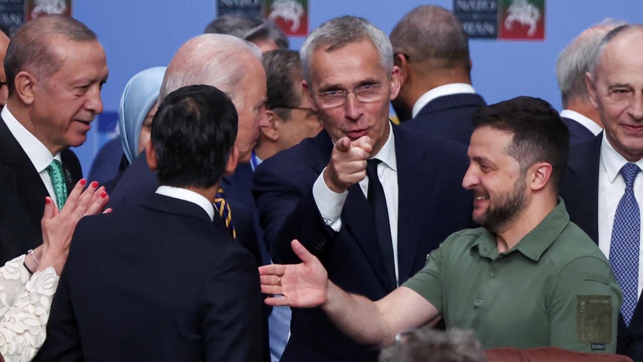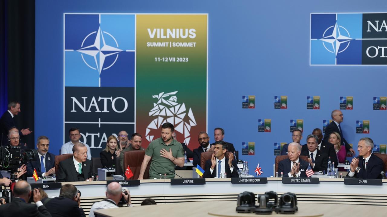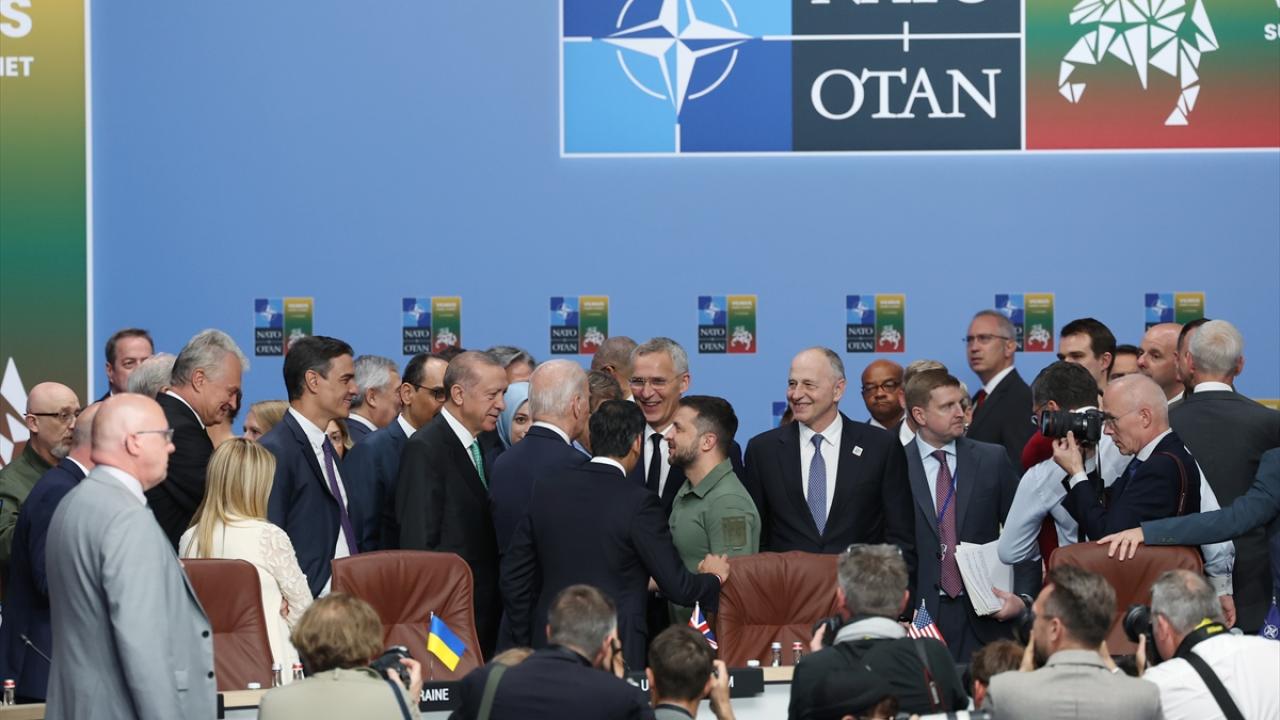 Ukrayna Devlet Başkanı Volodimir Zelenskiy de salona girişinin ardından tokalaştığı Erdoğan, Biden ve Stoltenberg ile sohbet etti.