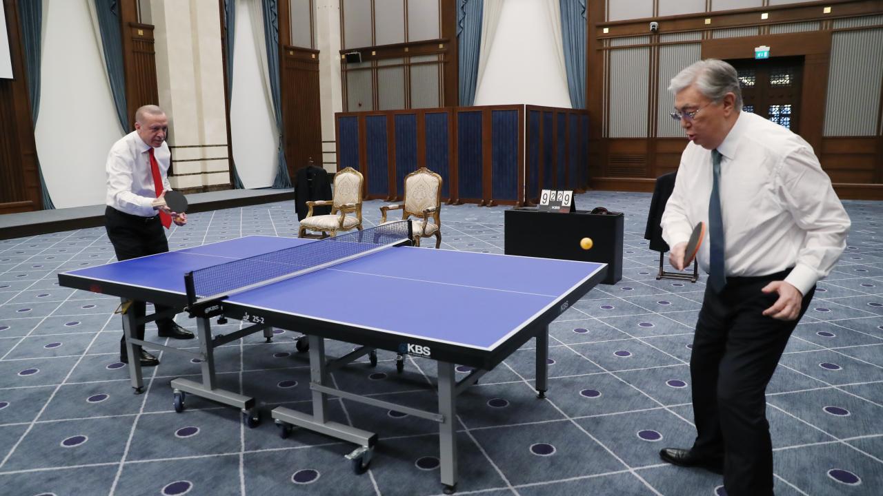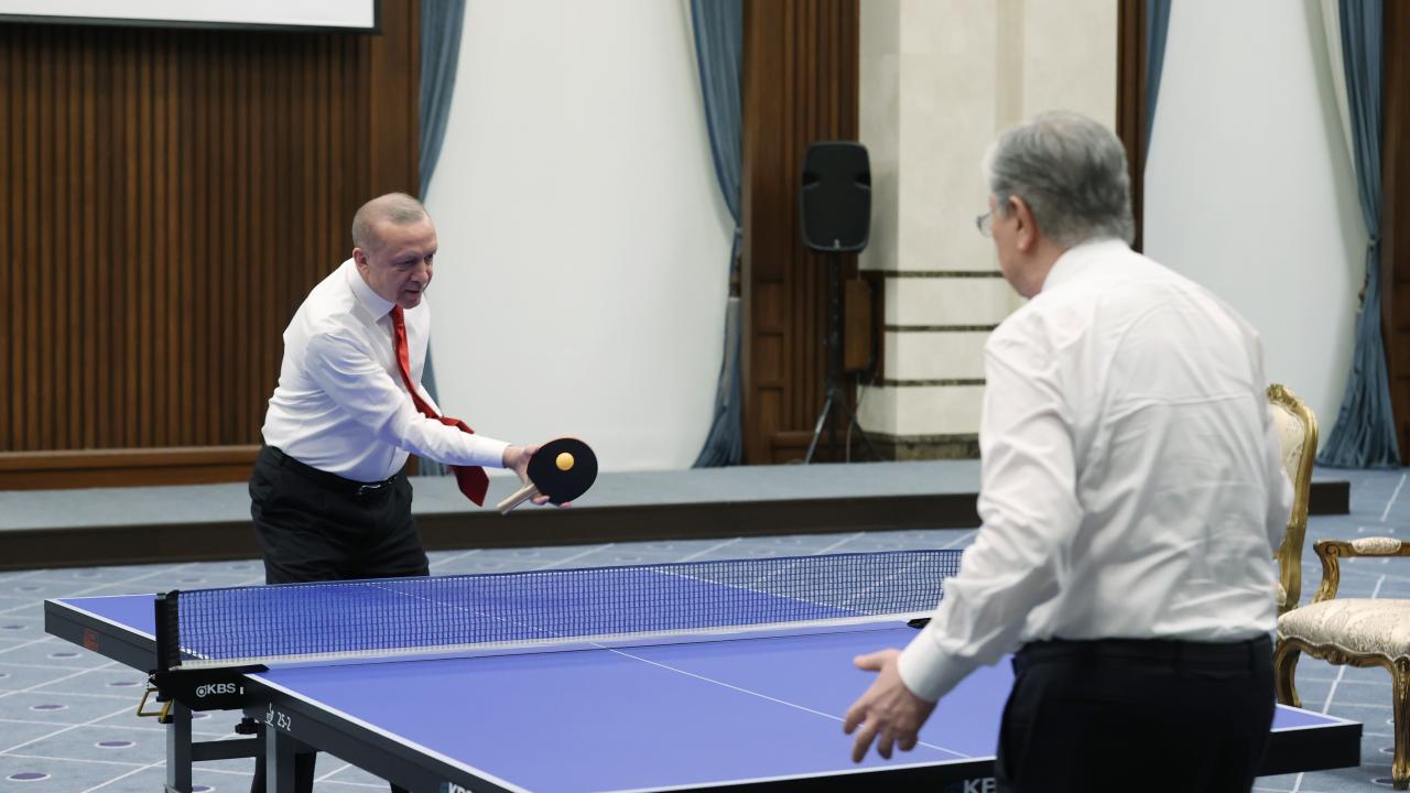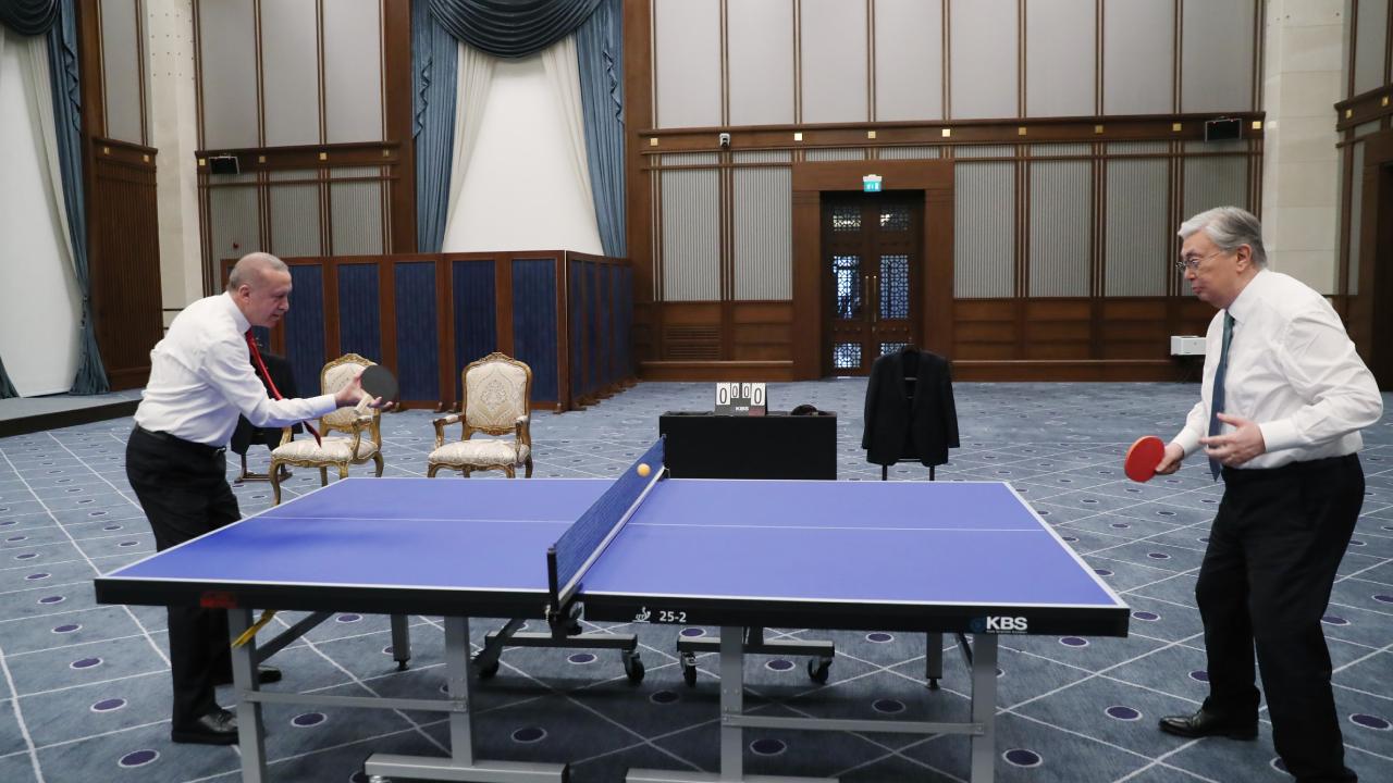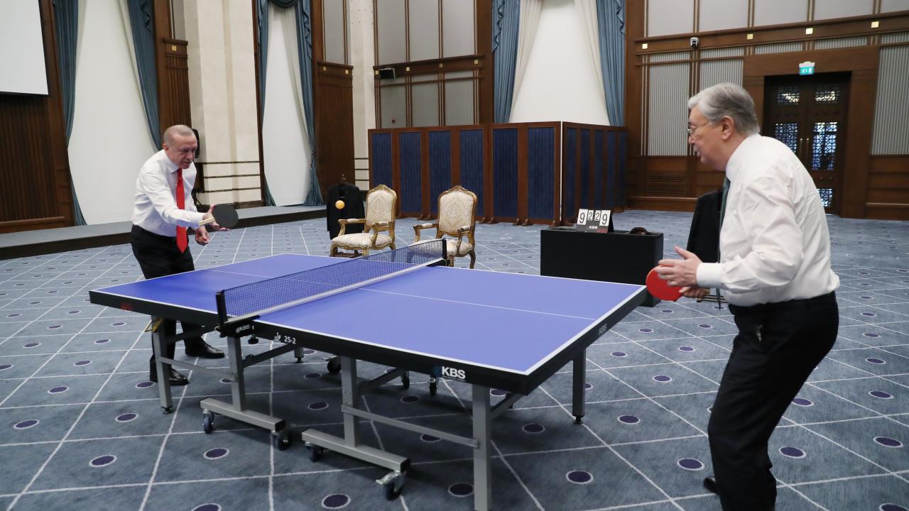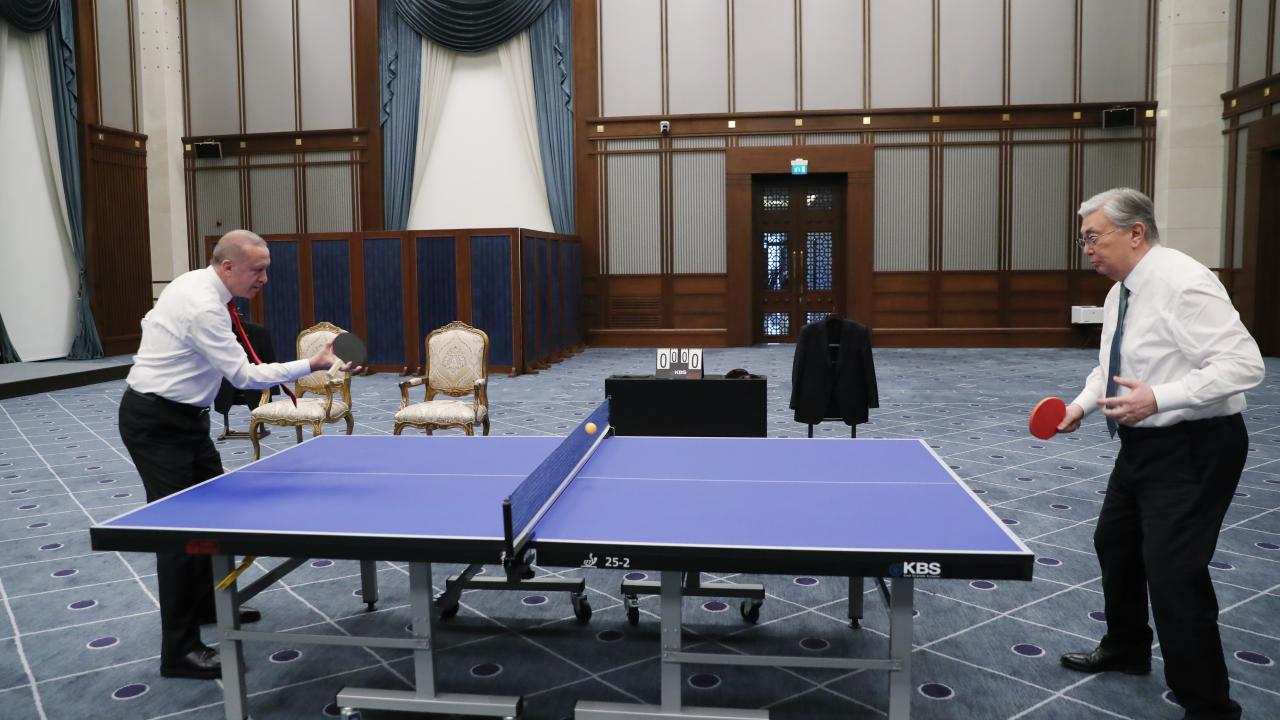 Cumhurbaşkanı Recep Tayyip Erdoğan ve Kazakistan Cumhurbaşkanı Kasım Cömert Tokayev masa tenisi oynadı.