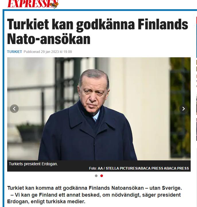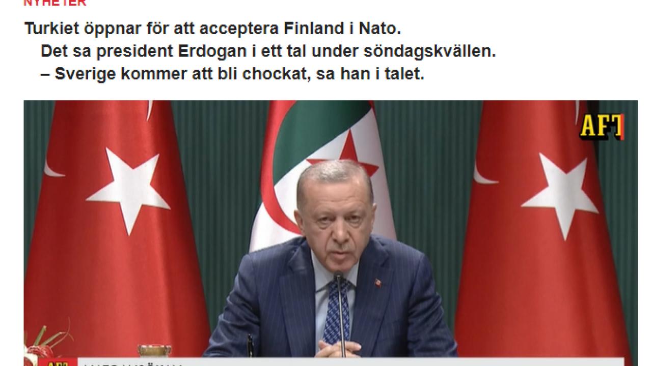Aftonbladet((Aftunbladet)) gazetesinin gündeminde de Cumhurbaşkanı Erdoğan`ın açıklamaları vardı. Gazete gelişmeleri, "Türkiye Finlandiya`nın NATO üyeliğini kabul etmeye açık" üst başlığıyla okuyucularına duyurdu.