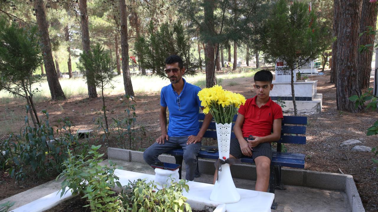 Maçka ilçesi kırsalında teröristlerden korumaya çalıştığı Eren Bülbül ile şehit düşen Gedik`in Afyonkarahisar`da yaşayan kardeşi Arif Gedik, eşi ve çocuklarıyla ağabeyinin İskenderun ilçesindeki mezarını şehadetinin 8. yılında ziyaret etti.