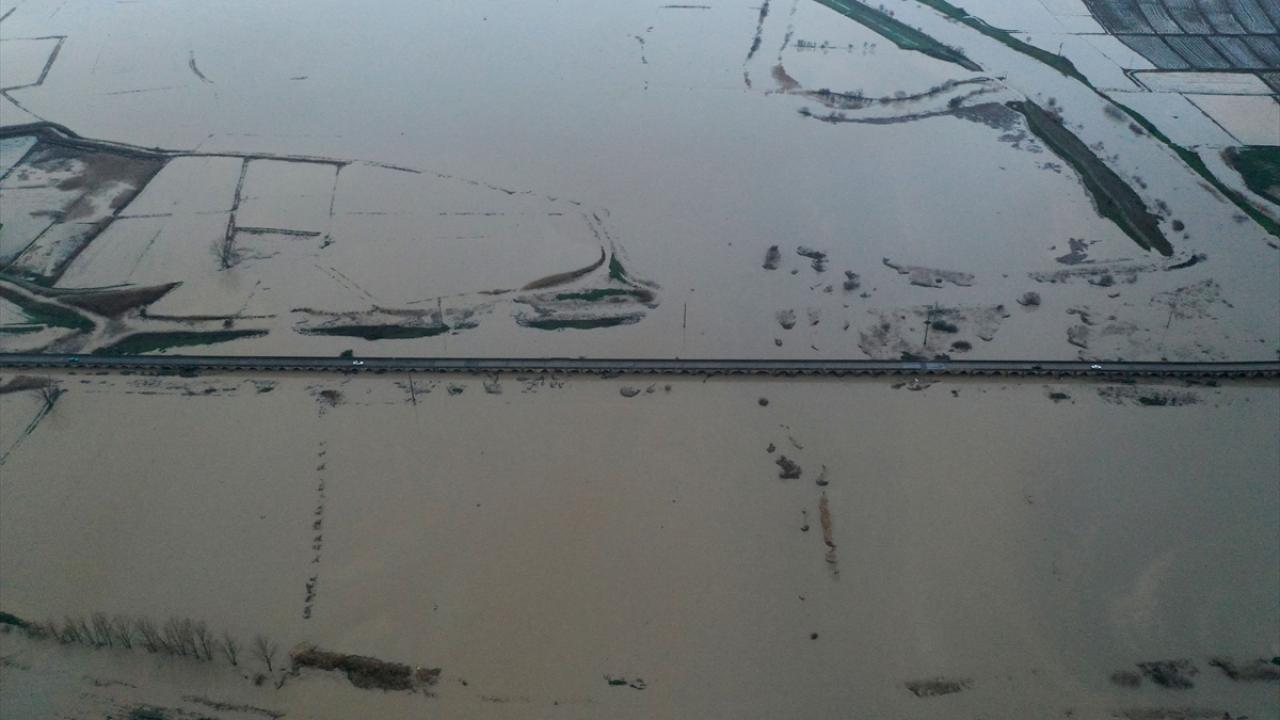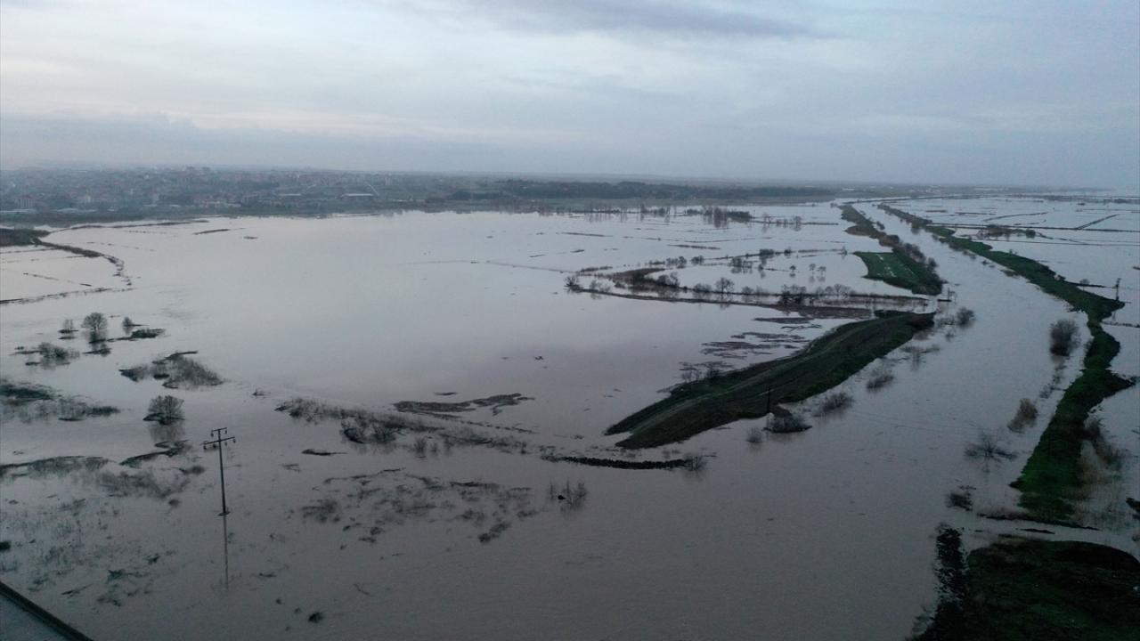 Uzunköprü ilçesindeki yatağından çıkarak yer yer taşkınların meydana geldiği nehrin çevresindeki tarım arazileri sular altında kaldı.