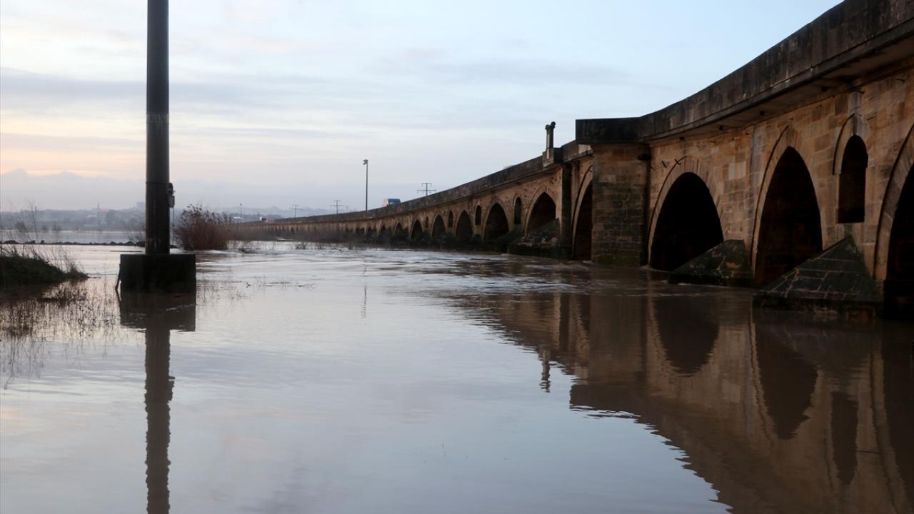 Nehirdeki debi artışıyla birlikte su seviyesi yükseldi.