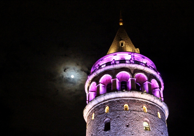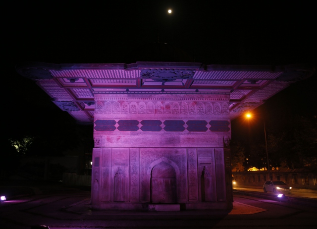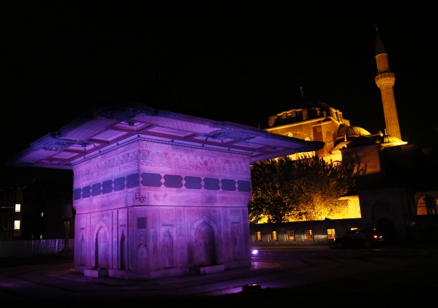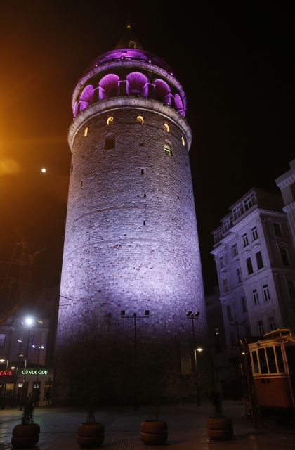 "İstanbul’da Erguvan Zamanı" etkinlikleri kapsamında aralarında Tophane Çeşmesi'nin de olduğu İstanbul'un sembolü olan tarihi eserler erguvan renklerine büründü.