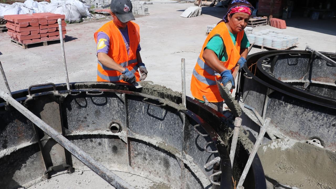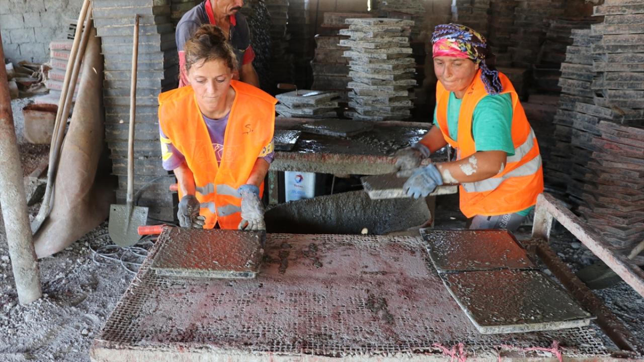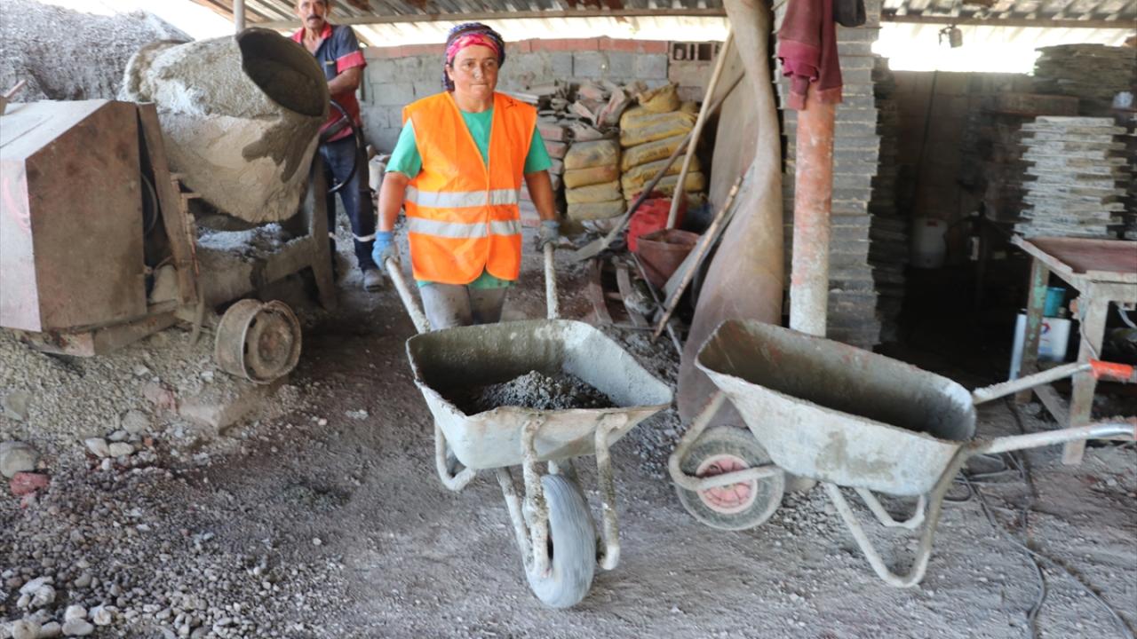 Menteşe, ellerinden birçok iş geldiğini aktararak, beton büz başta olmak üzere süslü taşlar yaptıklarını, çimento taşıdıklarını ve harç karıştırdıklarını anlattı.
