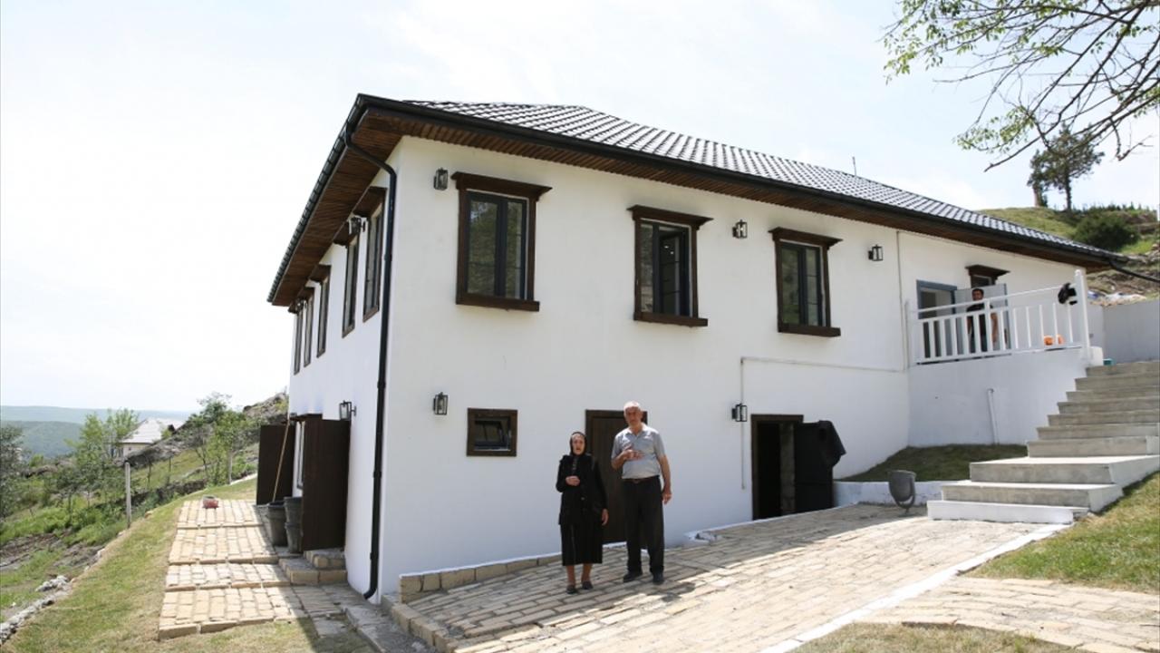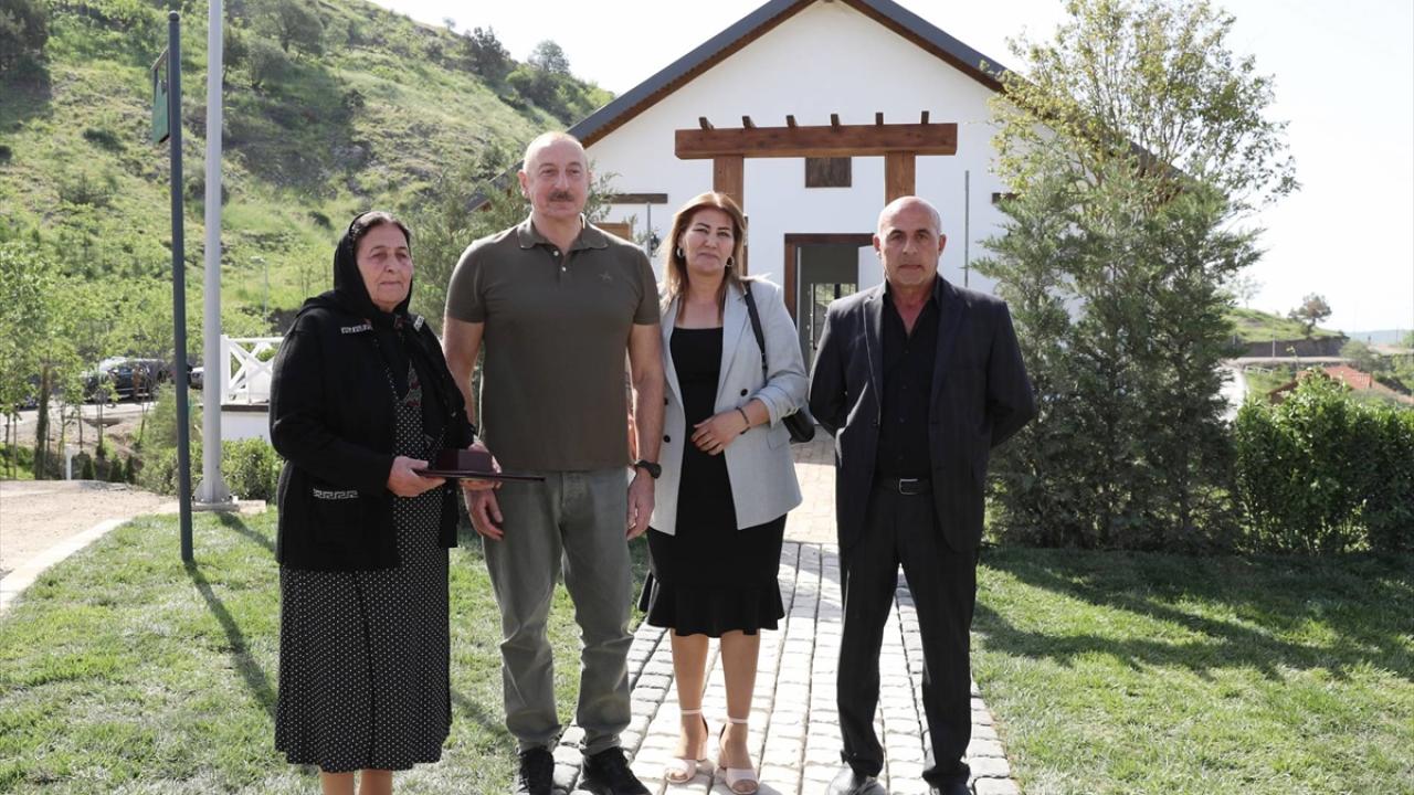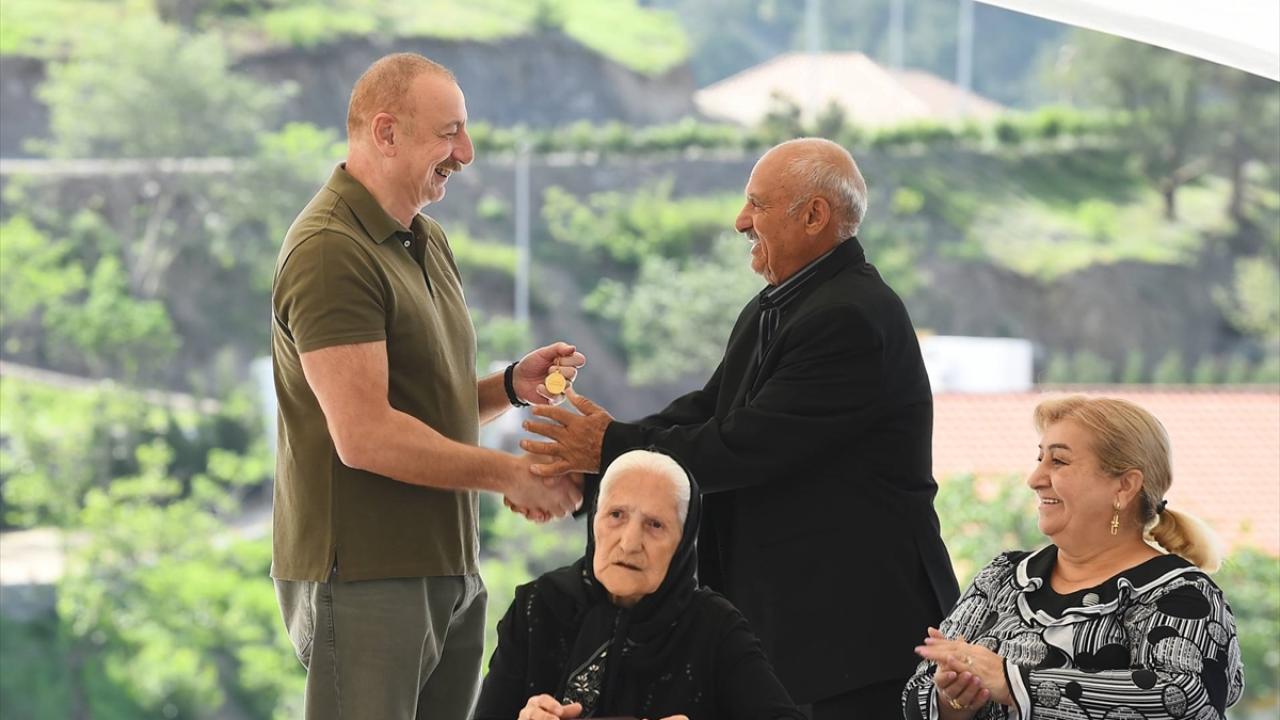 Laçın`e giden Cumhurbaşkanı Aliyev, dönüş yapan ailelerle bir araya gelerek, onlara devlet tarafından yapılan evlerinin anahtarlarını takdim etti.