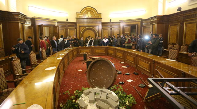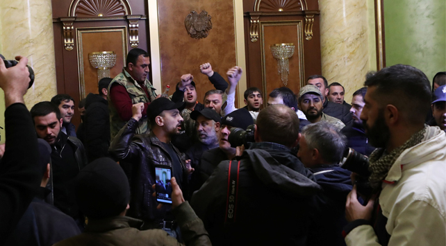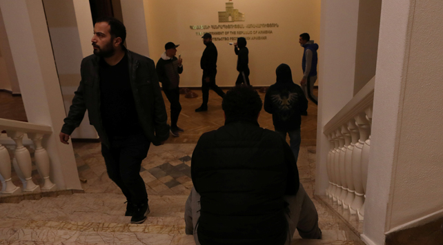 Hükümet binasının camlarına kırarak içeri giren protestocular, Paşinyan ve Ermenistan aleyhine sloganlar attı. Bazı protestocular Paşinyan’ın makam odasına girerken Ermenistan Başbakanı`na istifa çağrısında bulundu.