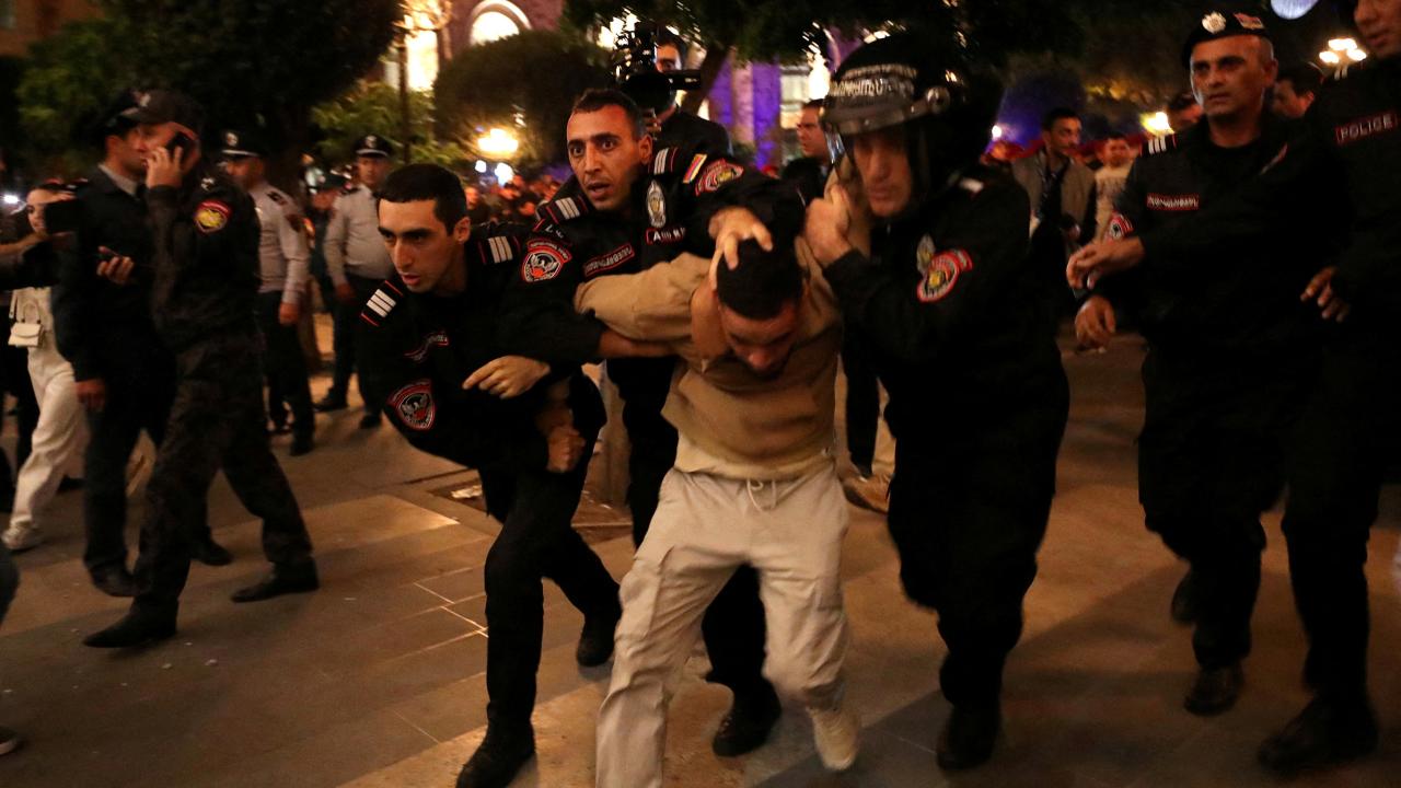 Ermenistan'ın başkenti Erivan'da, Azerbaycan'ın Karabağ'da icra ettiği antiterör operasyonu sonrasında hükümet karşıtı gösterilerde bazı protestocular gözaltına alındı. Güvenlik güçlerinin geniş önlem aldığı Cumhuriyet Meydanı'ndaki gösteriler devam ederken protestocular ana caddeleri trafiğe kapattı.