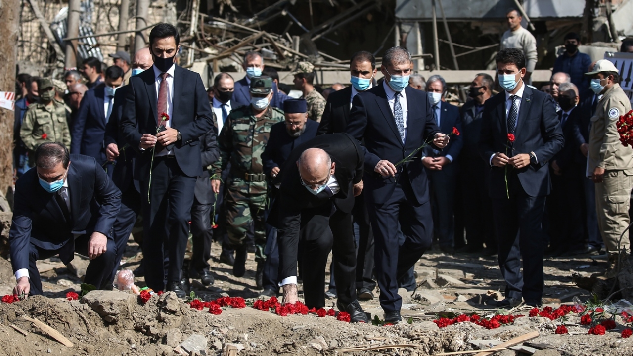 Ateşkes üzerinden henüz 24 saat geçmeden Ermenistan ordusu, dün ülkenin 2`nci büyük kenti olan Gence`deki sivillerin yerleşim birimine füze ile saldırması sonucu 9 kişi hayatını kaybetmiş, 34 kişi de yaralanmıştı.
