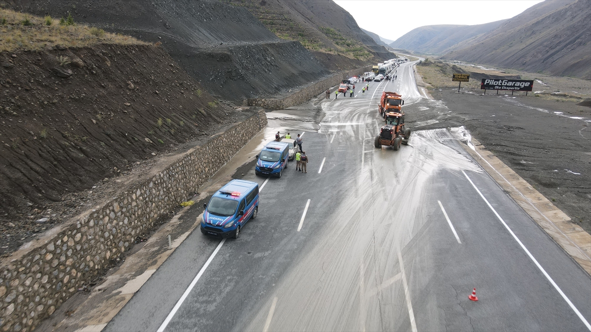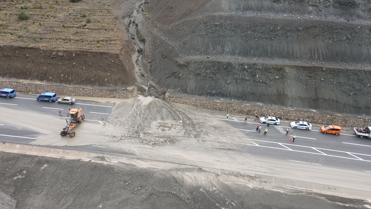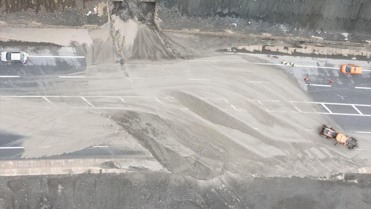 Tek yönlü ulaşıma kapatılan yolda, jandarma ve polis ekipleri güvenlik önlemi aldı, Karayolları ekipleri çalışma yürüttü.