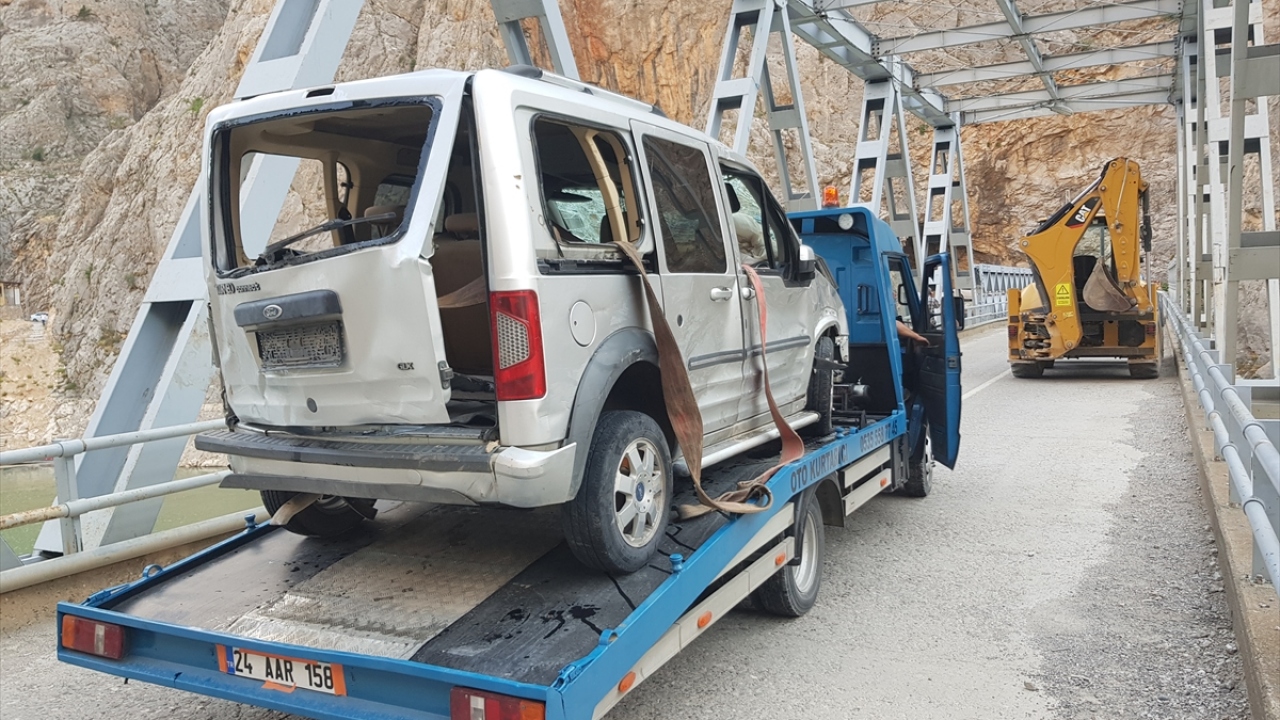 Erzincan'ın Kemaliye ilçesinde, 5 kişinin öldüğü 3 kişinin ise yaralandığı kazada suya gömülen kamyonet, Karasu Nehri'nden çıkarıldı.
