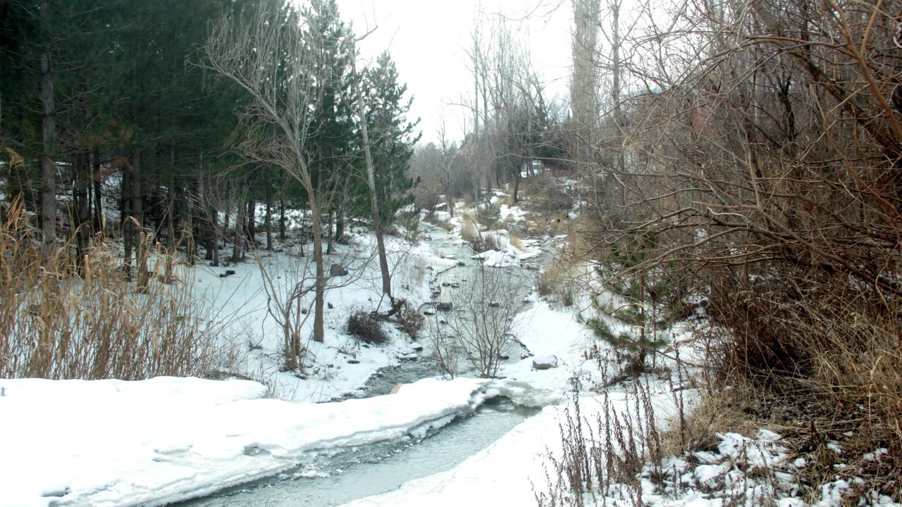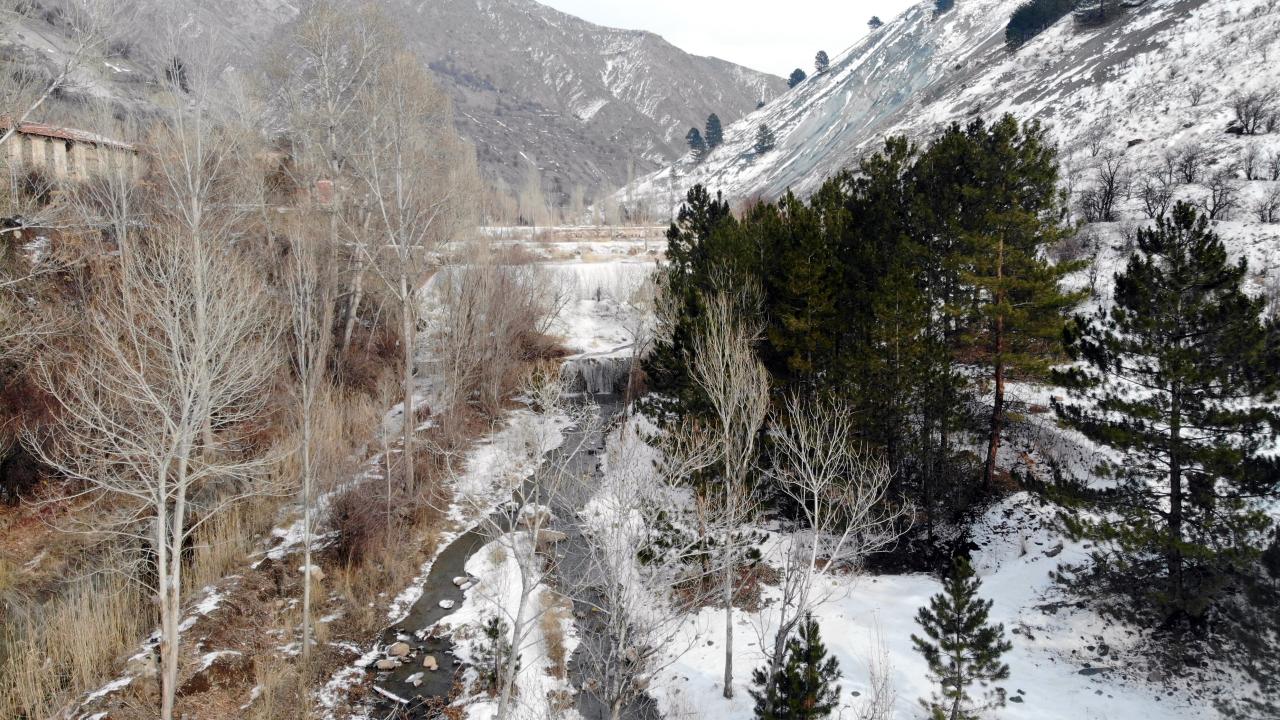 Soğuk havanın etkili olduğu Erzincan’da dereler buz tuttu.