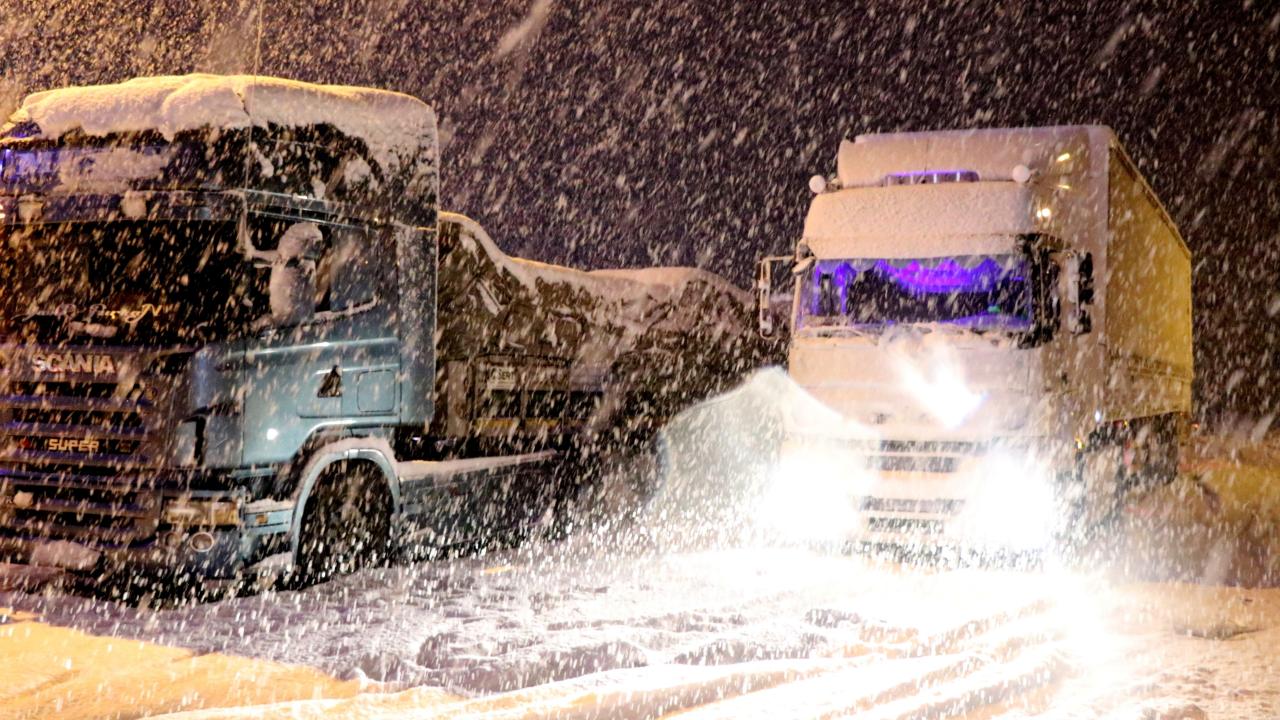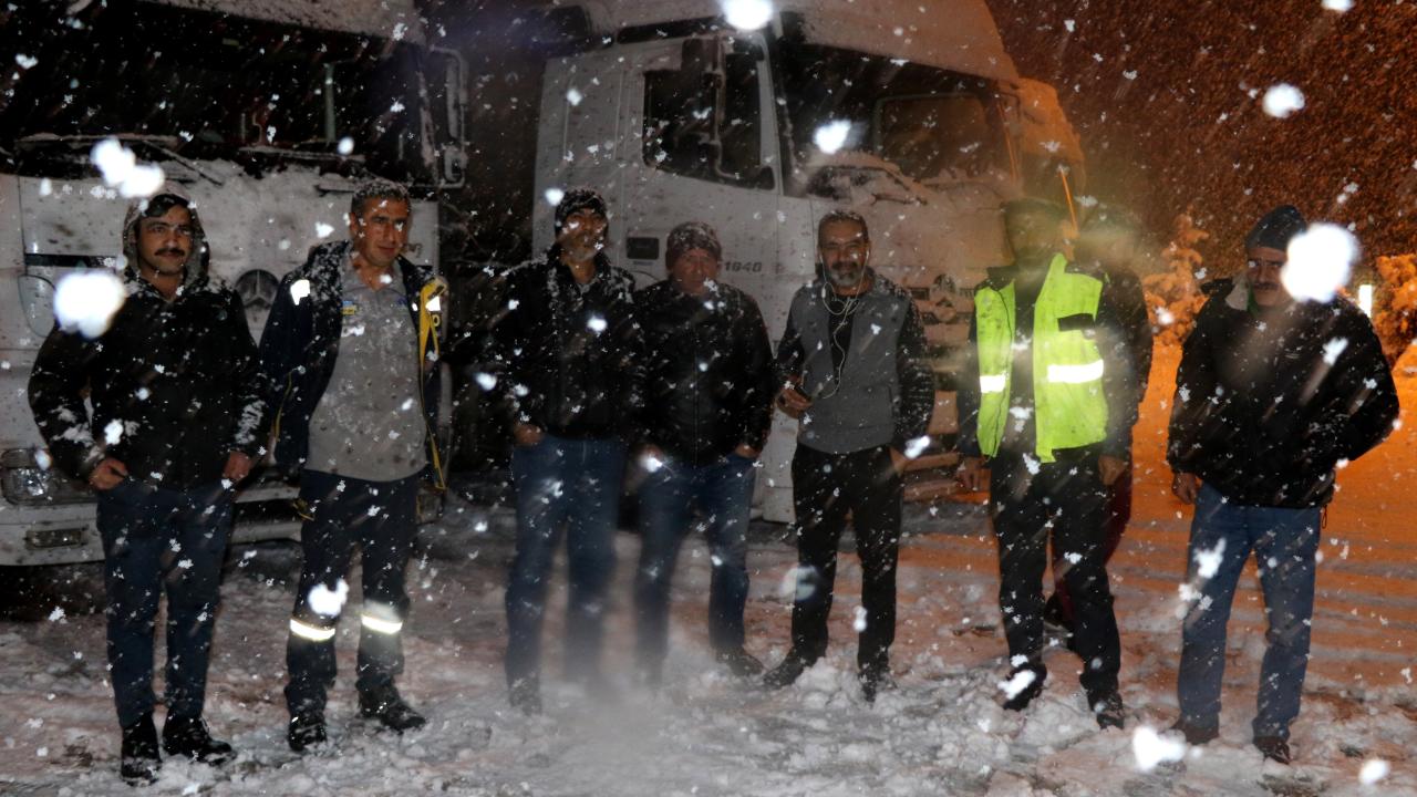 Bölgede Karayolları ekipleri kar küreme ve tuzlama çalışması yaparak trafik akışını sağlamaya çalışıyor. Kara yolunda görev alan polis ekipleri ağır tonajlı araçların geçişine izin vermiyor.