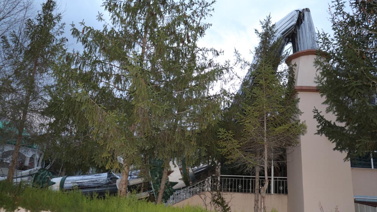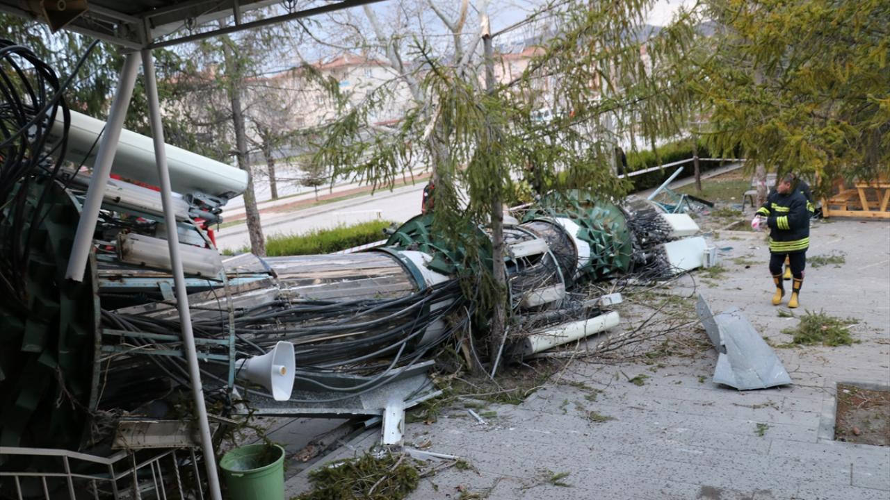 Yunus Emre Mahallesi`ndeki Akşemsettin Camisi`nin minaresi sabah namazının ardından fırtına yüzünden bahçeye devrildi.