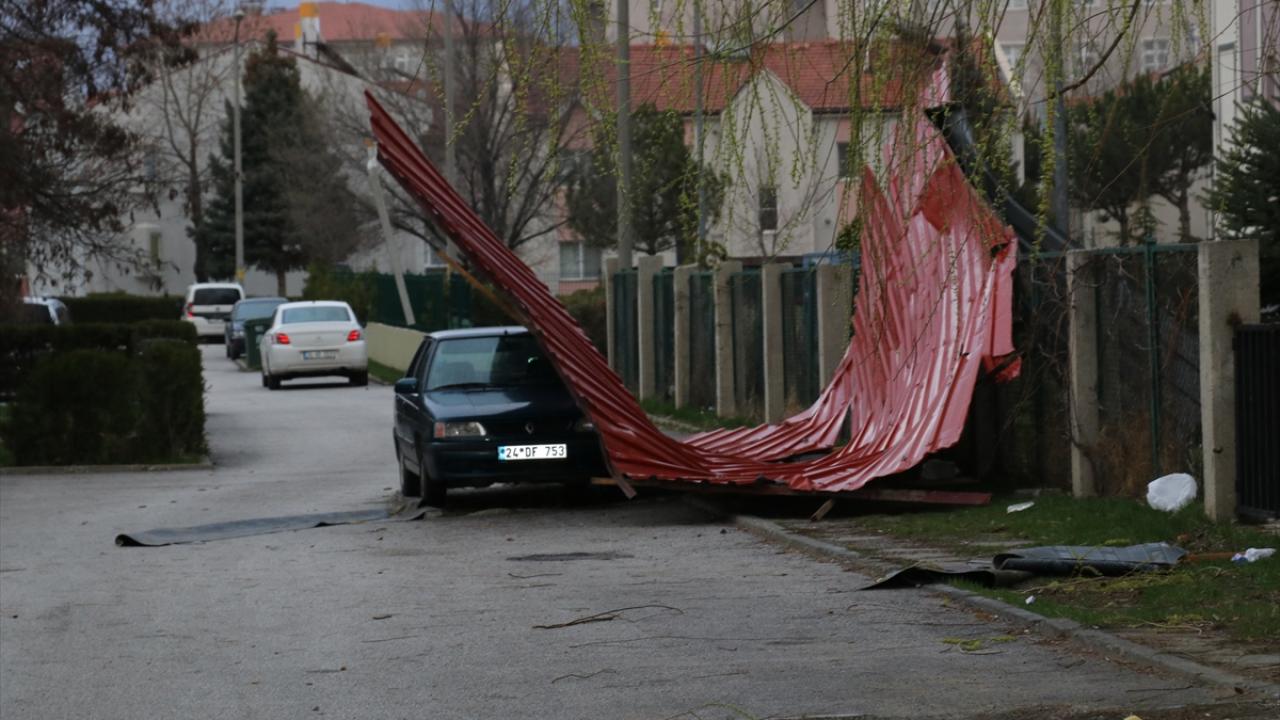 Şiddetli fırtına dolayısıyla yol kenarlarındaki çöp kovaları savrulurken, bazı evlerin çatılarında da küçük çaplı hasar oluştu.