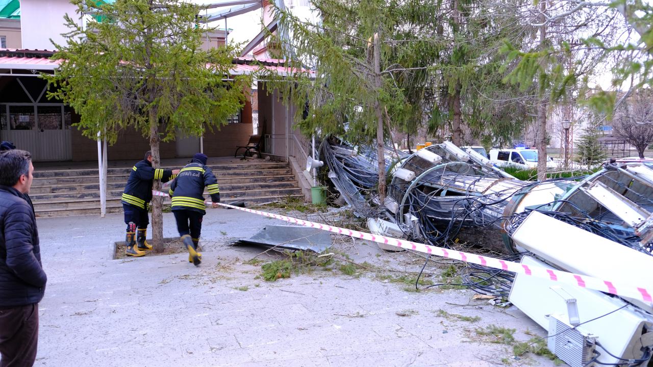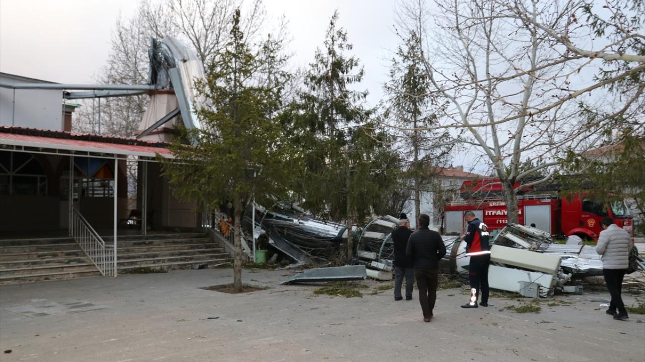 Fırtınanın şiddetiyle, kentte yapımı süren Erzincan Öğretmenevi`nin çatısının bir kısmı hasar gördü, Erzincan Ortaokulu`nun çatısından da parçalar uçtu.