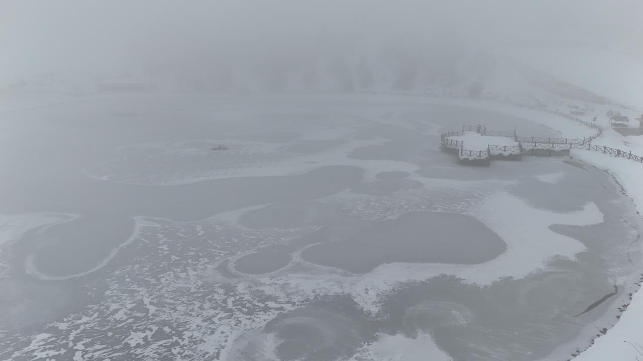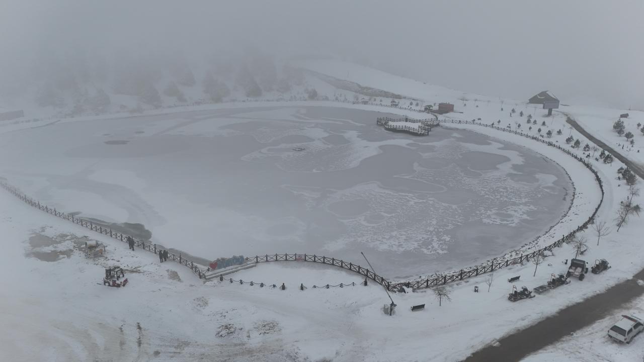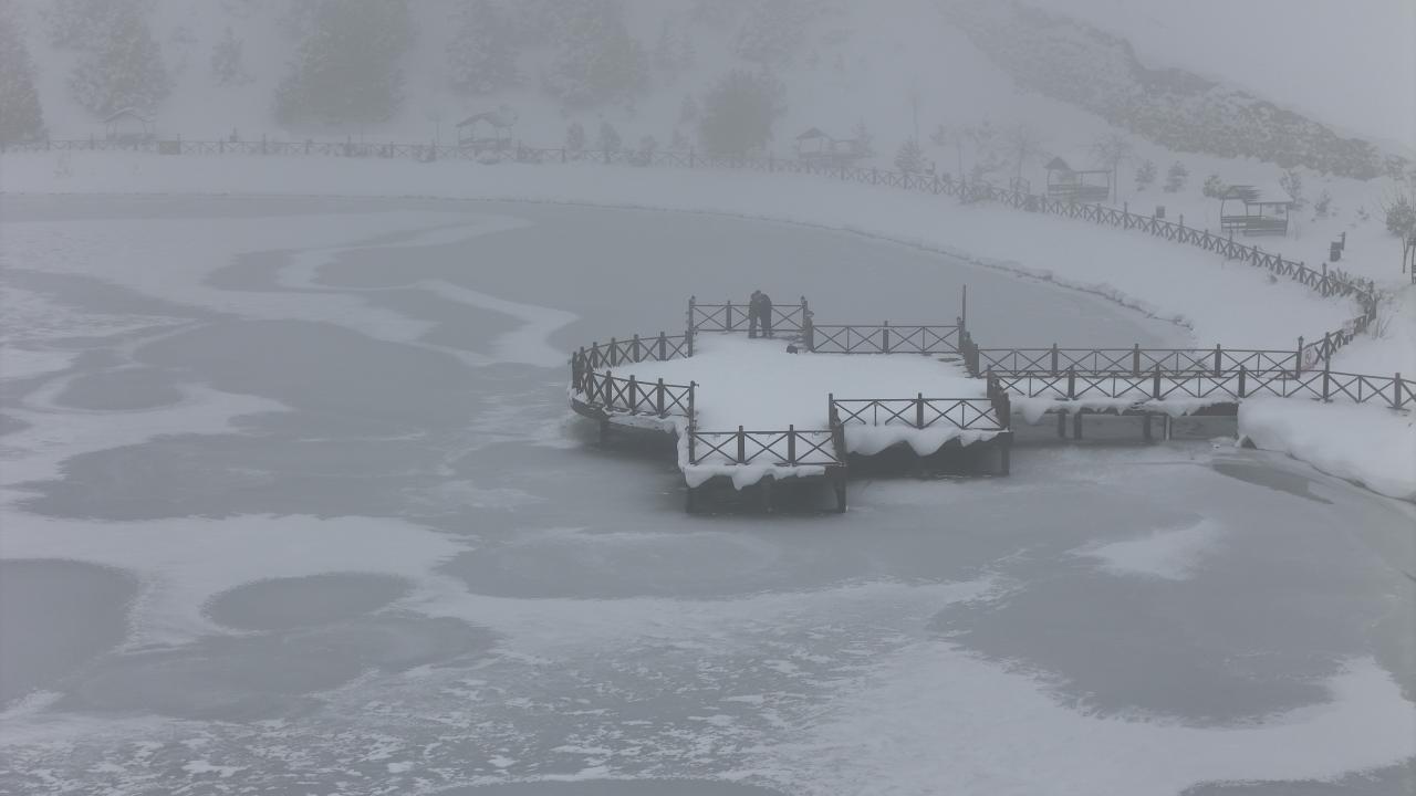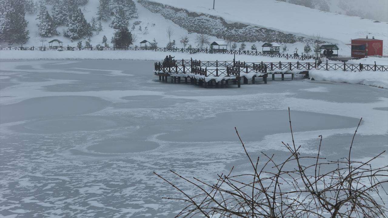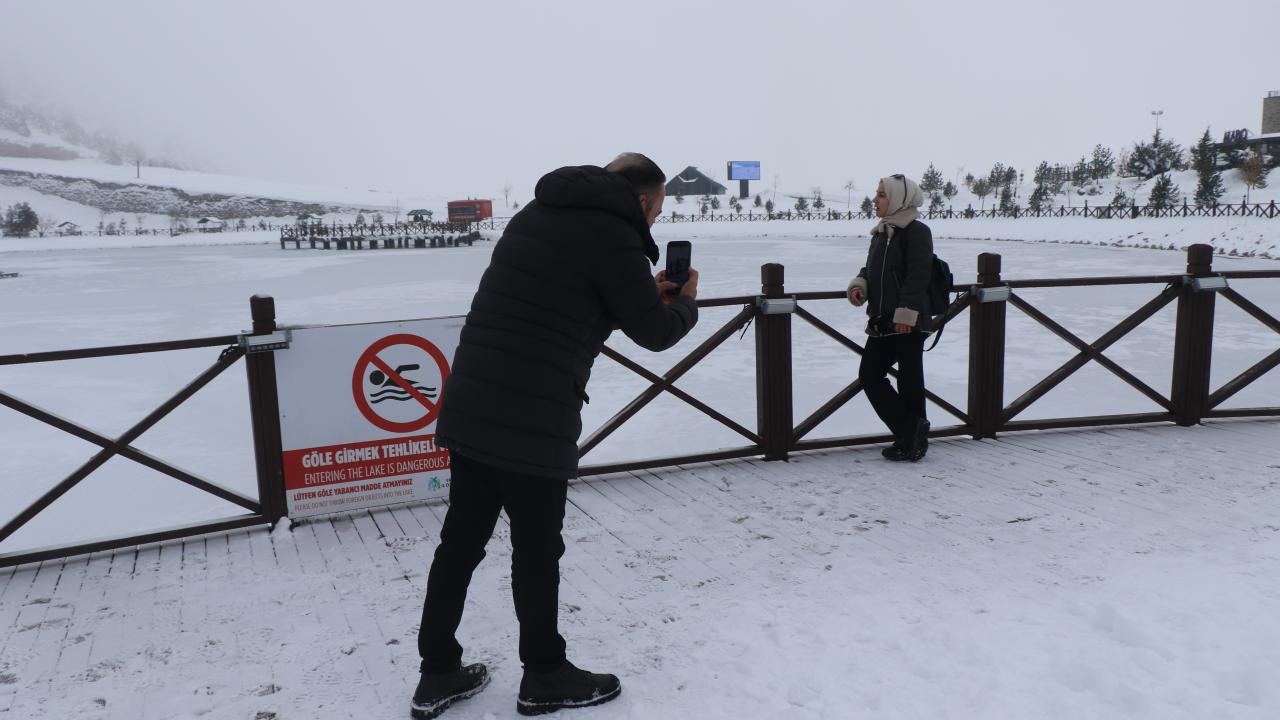 Buzla kaplanan göl ile çevresi, seyrine doyumsuz bir manzara oluşturdu.