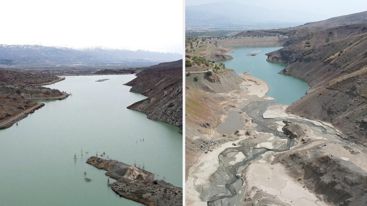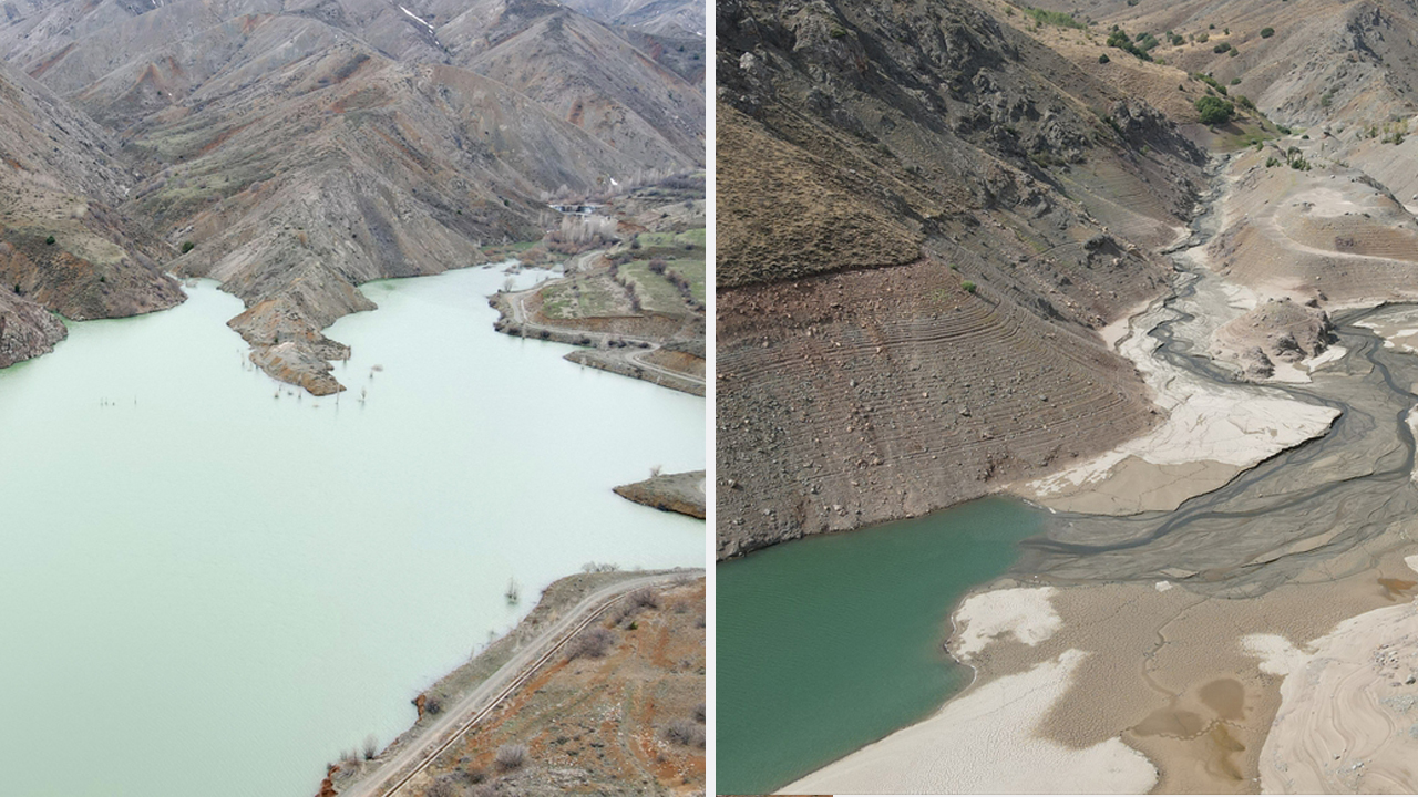 Barajın kuraklık dönemindeki hali ile son durumu Anadolu Ajansı muhabirince aynı açılardan görüntülendi.