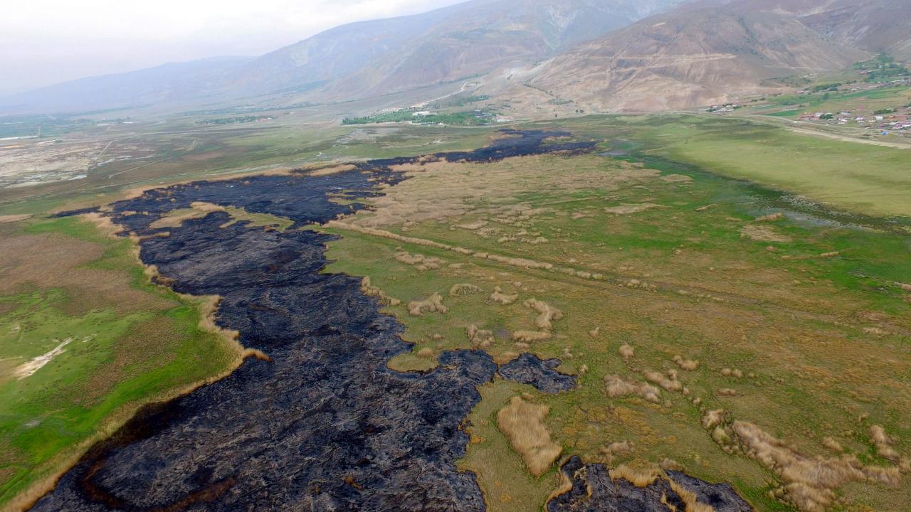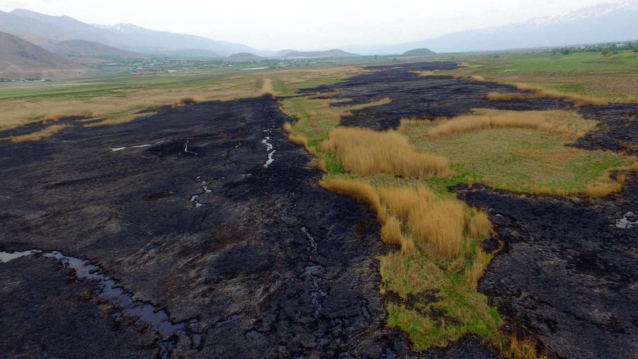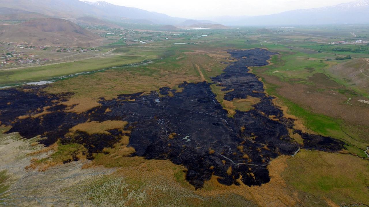 Erzincan’da, birçok kuş ve bitki türünün olduğu, 'kuş cenneti' olarak adlandırılan Ekşisu Sazlığı'nda dün çıkan yangın, 10 saatte güçlükle söndürüldü. Yangında 30 hektar alan, zarar görürken, çok sayıda hayvan da öldü.
