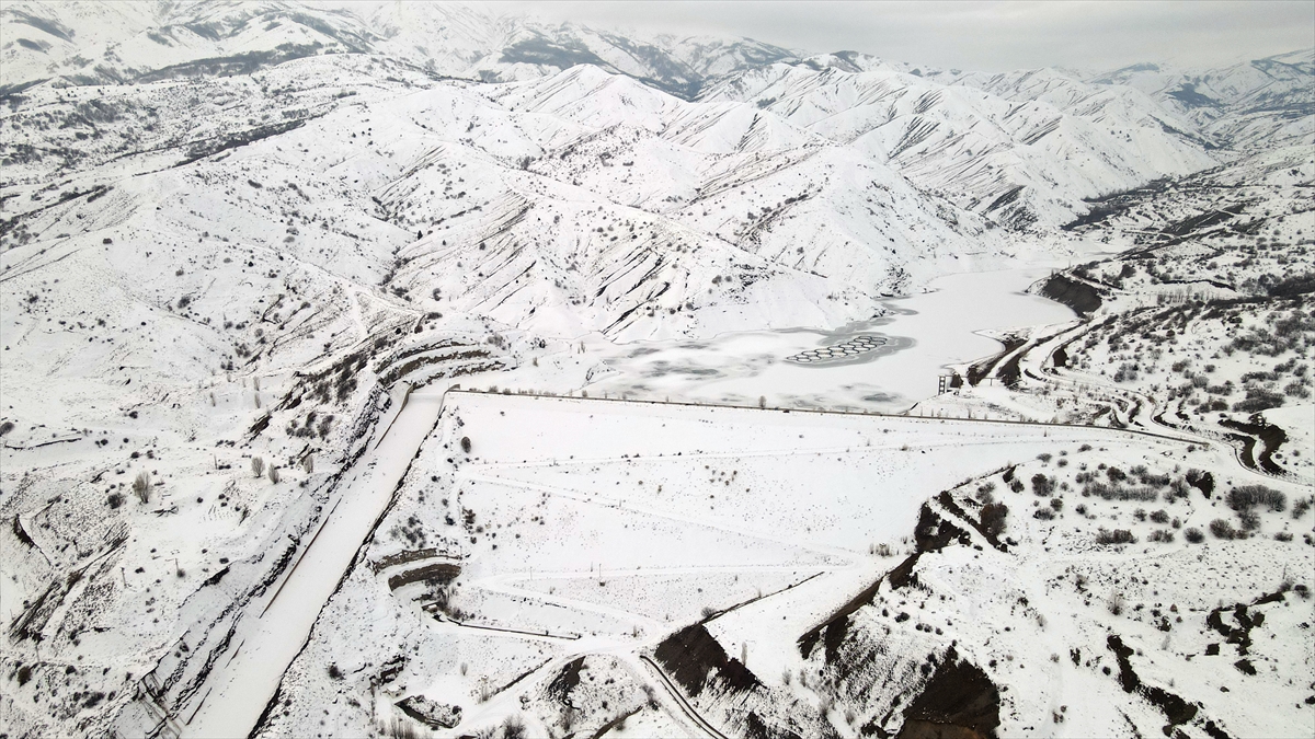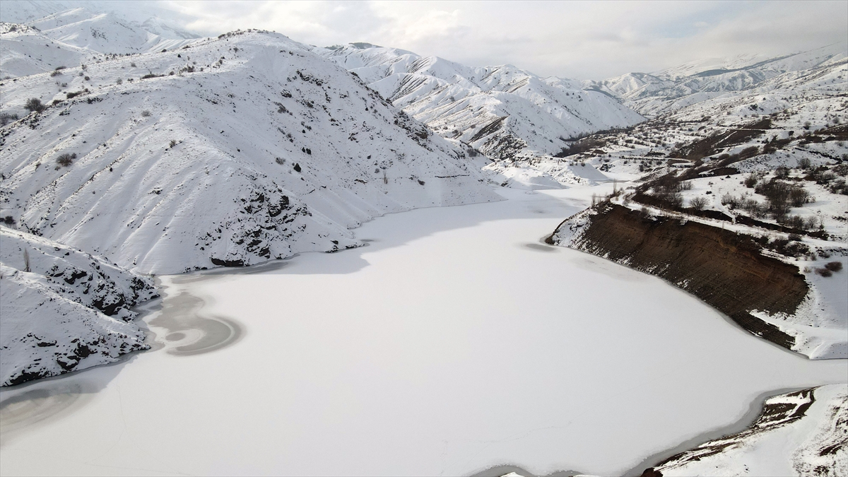Doğanın tamamen beyaz örtüyle kaplı olduğu ve sıcaklığın sıfırın altında 10 dereceye kadar düştüğü Erzincan`ın Çatalarmut köyündeki Devlet Su İşlerine (DSİ) ait Göyne Sulama Barajı`nın yüzeyi de buzla kaplandı.