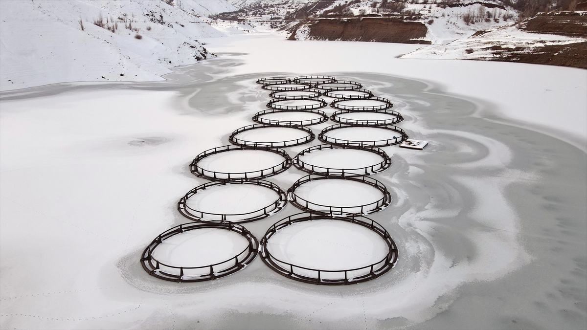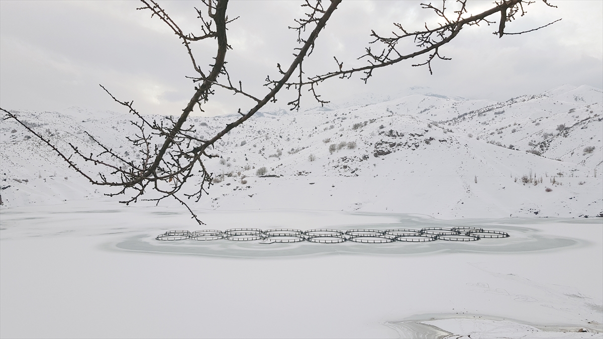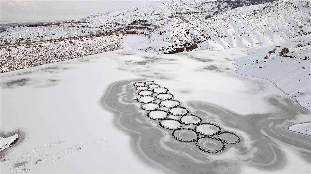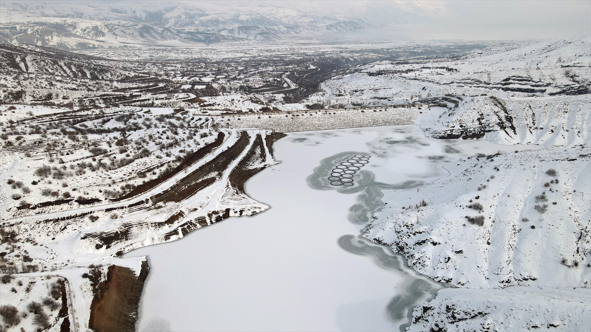 Yaz mevsiminde yaklaşık 50 bin dekarlık tarım arazisini sulamak için kullanılan, aynı zamanda da kafes balıkçılığı yapılan barajdaki balık kafesleri buz kütlesinin altında kaldı.