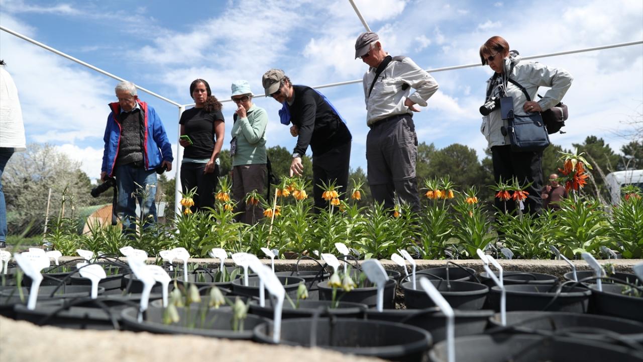 Ters Lale Koleksiyon Bahçesi`nde incelemede bulunup fotoğraf çeken bilim insanları, enstitü yetkililerinden çalışmaları hakkında bilgi aldı.
