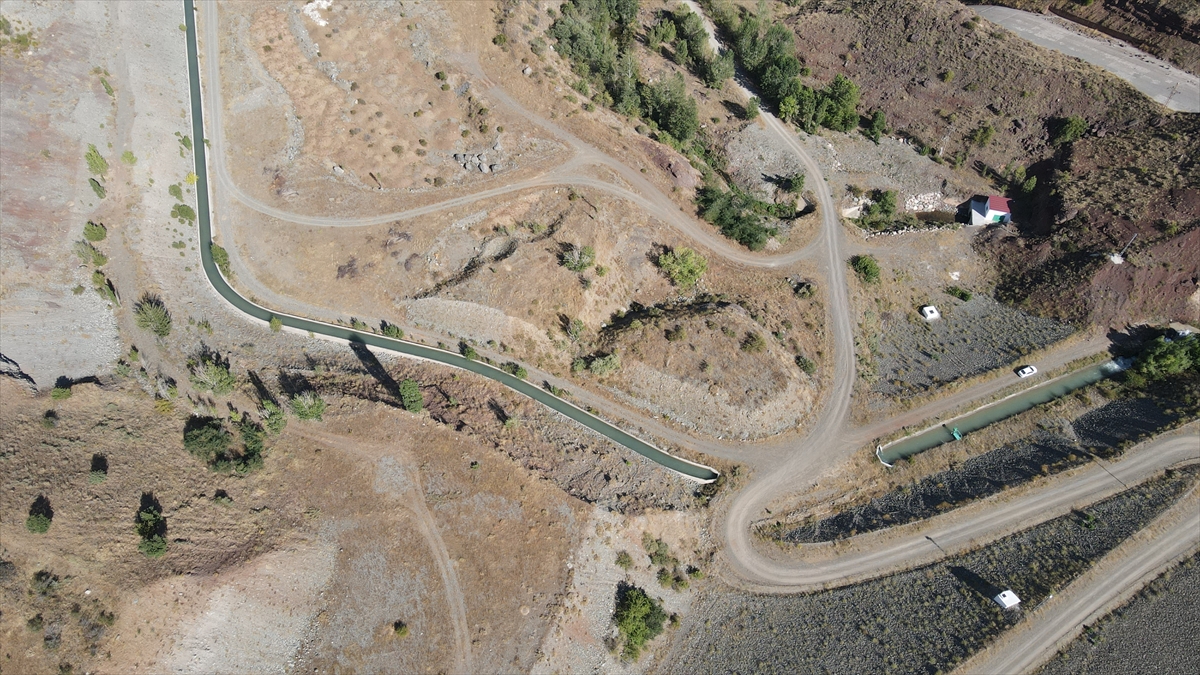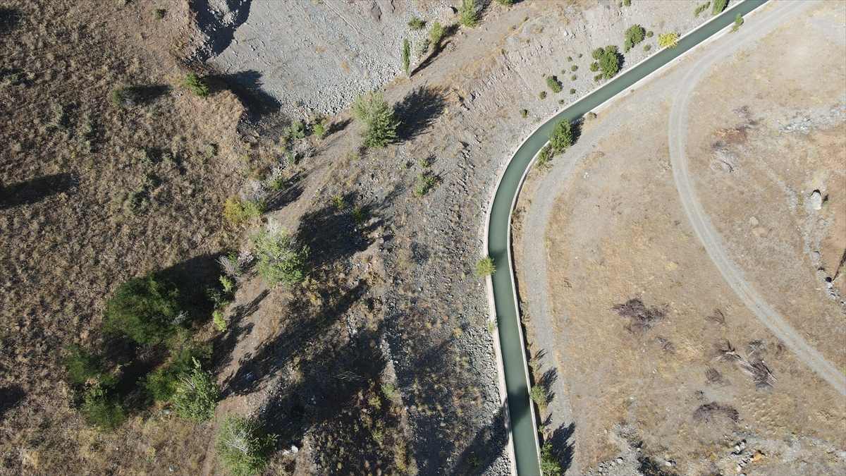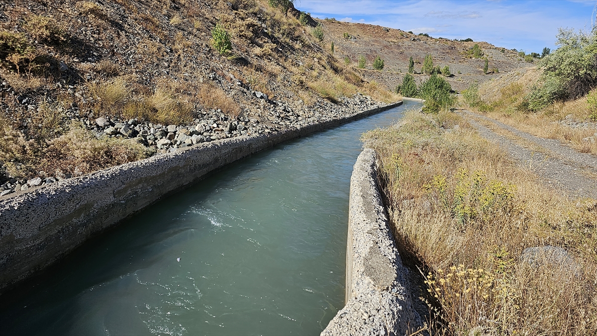 Yaz aylarında su miktarı önemli oranda azalan, Erzincan`ın Çatalarmut köyündeki Göyne Barajı`nda, arazilerin sulanması için görevlilerce kontrollü salınan su kanallar aracılığıyla tarım alanlarına ulaştırılıyor.