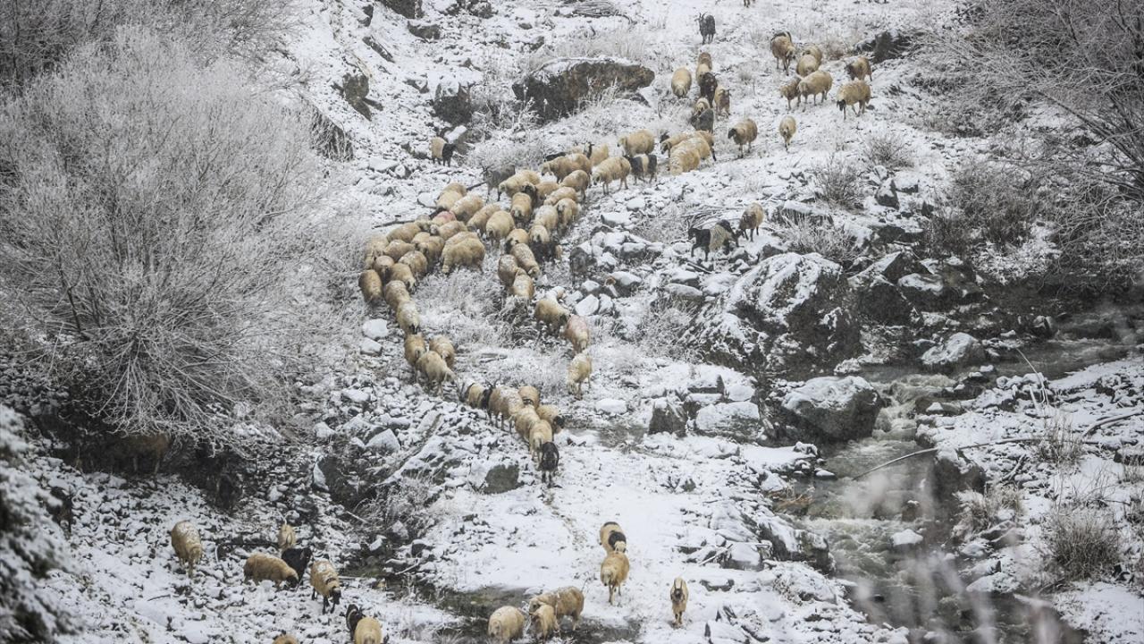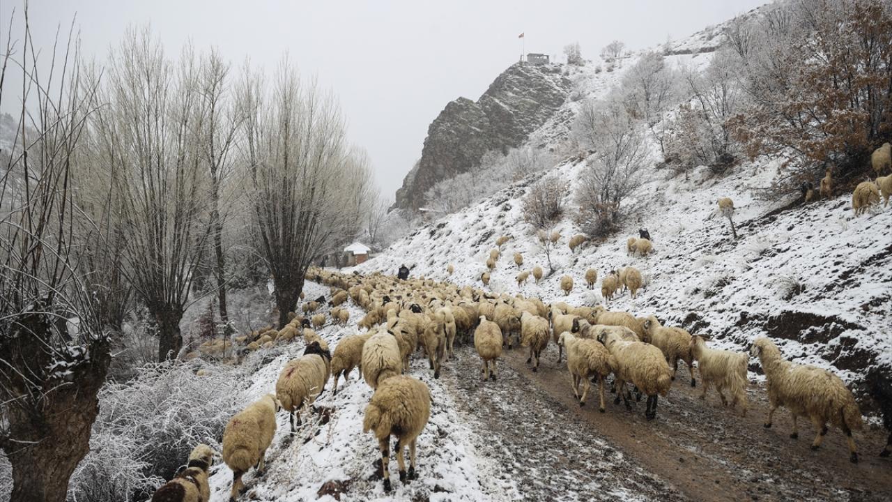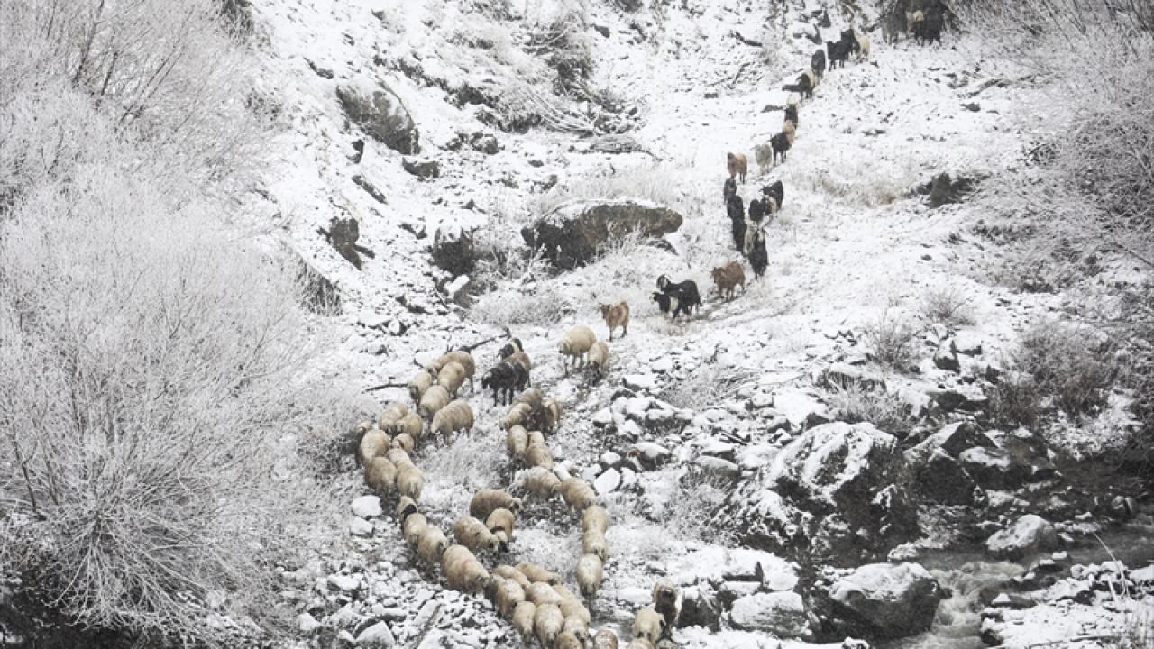 Erzincan'ın Kemah ilçesine bağlı Kerer köyünde hayvancılıkla uğraşan köylüler, yüksek kesimlerde kar yağışının etkili olması nedeniyle sürüleriyle köye göç etmeye başladı.