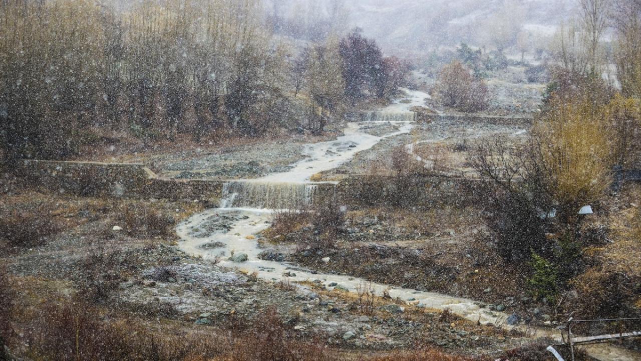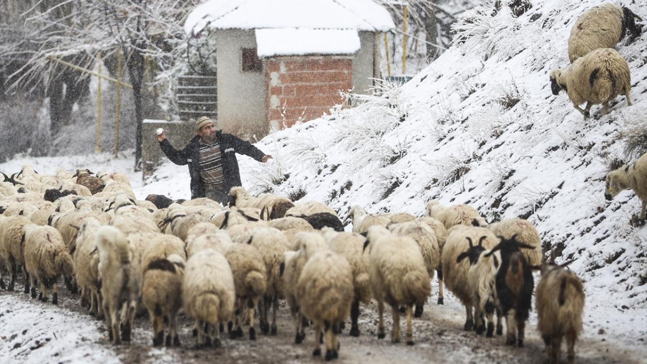 Hayvanlarını otlatmaya çıkaran çobanlar, kara yakalanınca geri dönmek zorunda kaldılar.