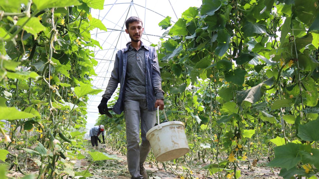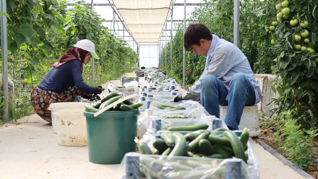 Ömer Uysal, TKDK`nin destekleriyle 2024`te tarım ve hayvancılık çiftliğini hizmete aldığını, buradaki 6 bin metrekare alana kurulu serada domates, salatalık ve marul yetiştirdiğini söyledi.