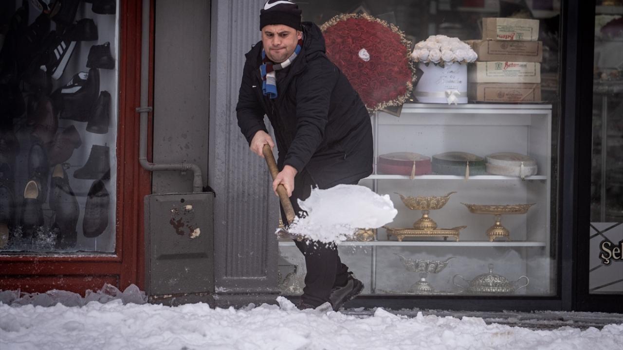 Beyaz örtüyle kaplanan Sarıkamış ilçesinde de vatandaşlar ev ve iş yerlerinin önünde biriken karları temizledi.