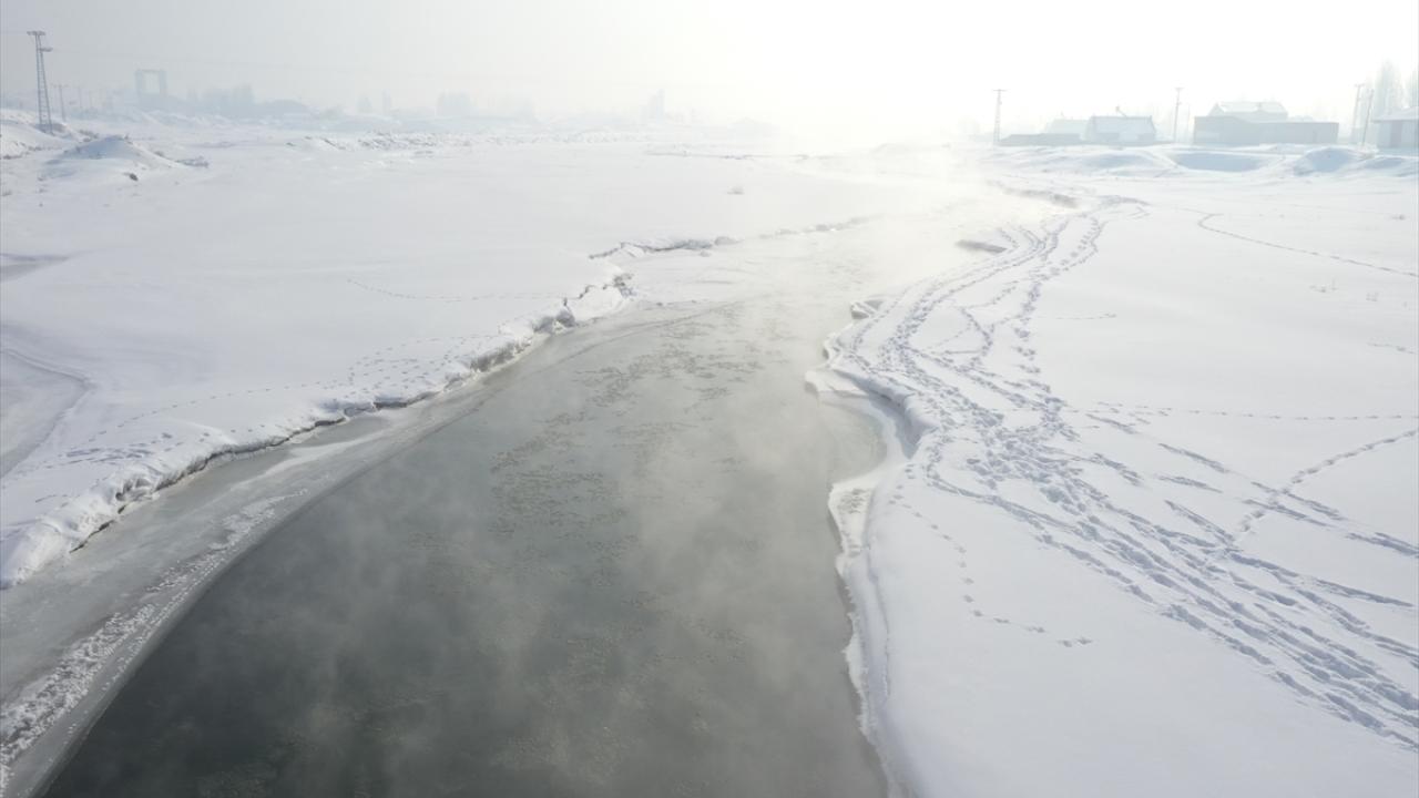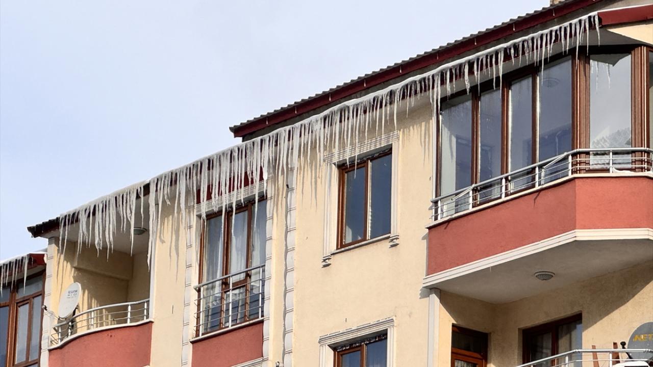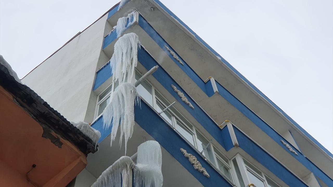 Erzurum, Ardahan ile Ağrı'da dondurucu soğuk hava nedeniyle nehir yüzeyi dondu, binalarda buz sarkıtları oluştu.