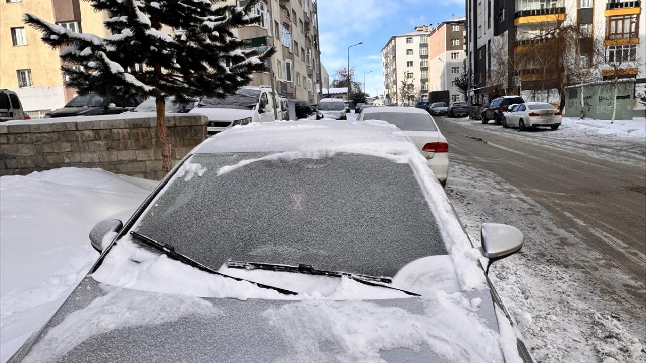 Gece sıcaklığın sıfırın altında 13 derece ölçüldüğü Erzurum`da araçların camları dondu, bina çatılarında buz sarkıtları oluştu.