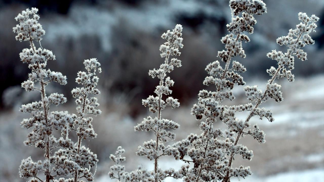 Hava sıcaklığının sıfırın altında 13 derece ölçüldüğü Sarıkamış ilçesinde ise bitkiler ve ağaçlar tutan kırağı ile beyaza büründü.