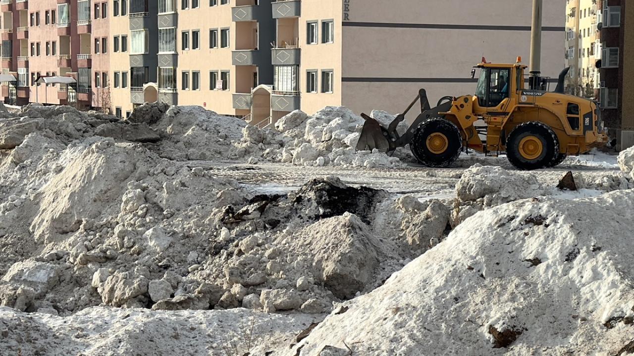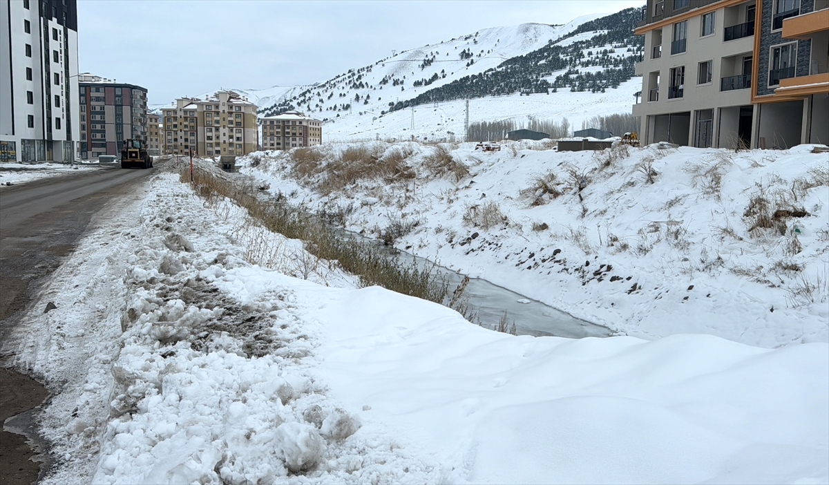 Derelerin de soğuk nedeniyle donduğu kentte belediye ekipleri iş makineleriyle biriken karları dere yataklarına bıraktı.