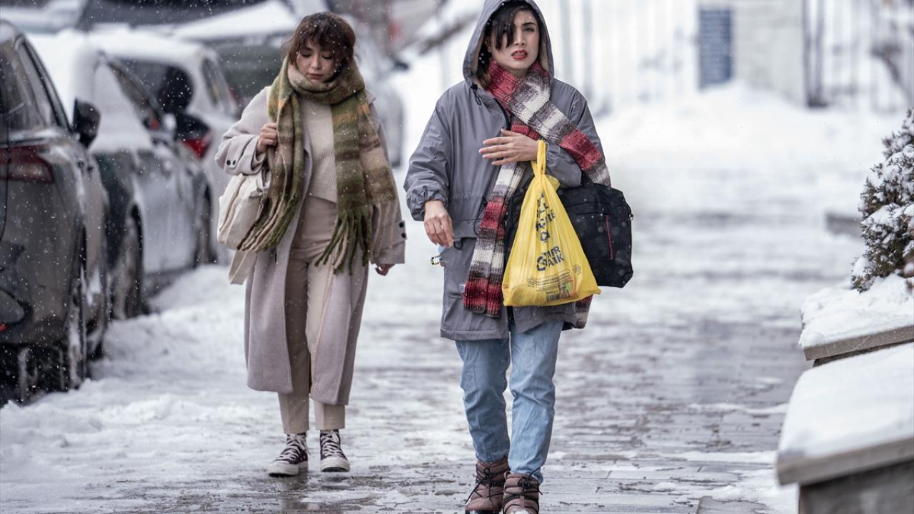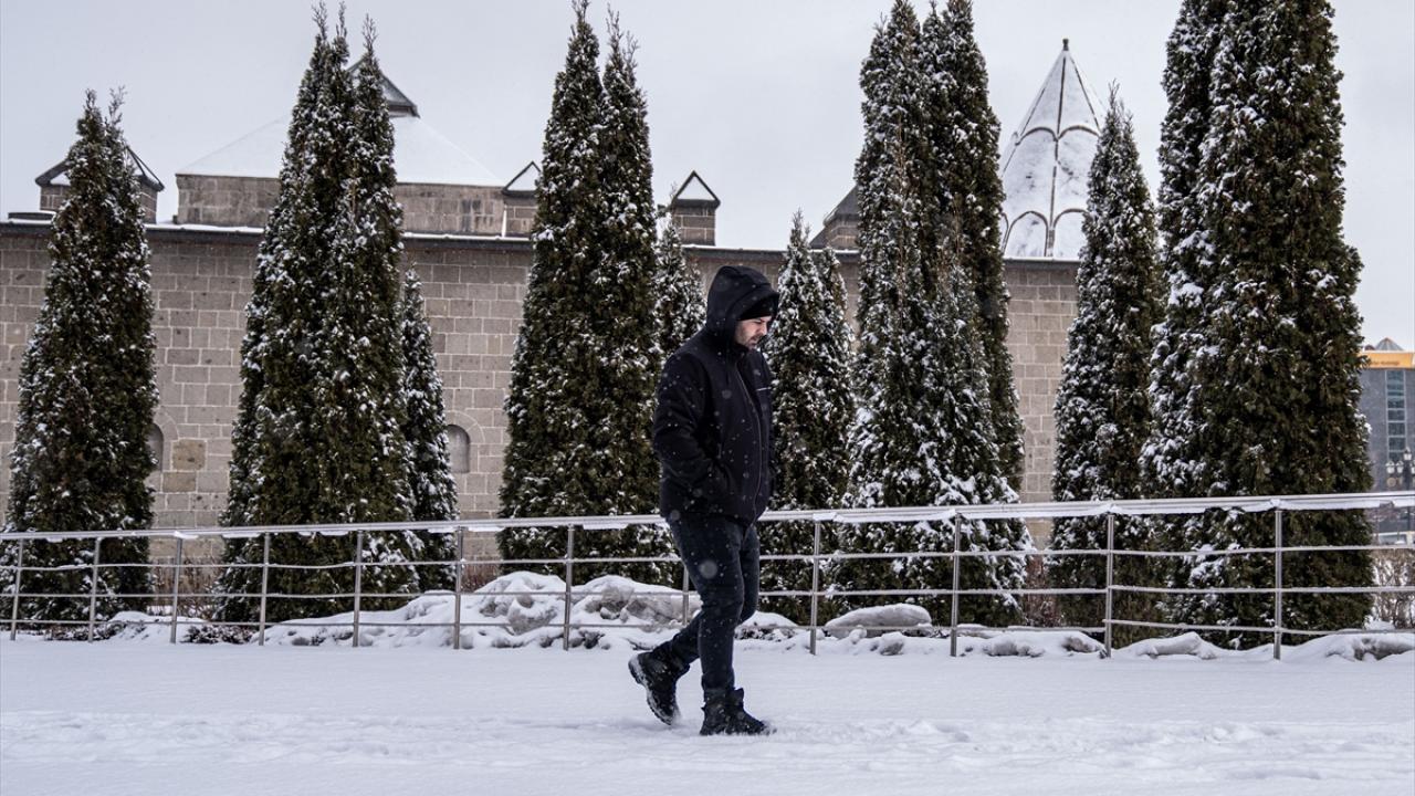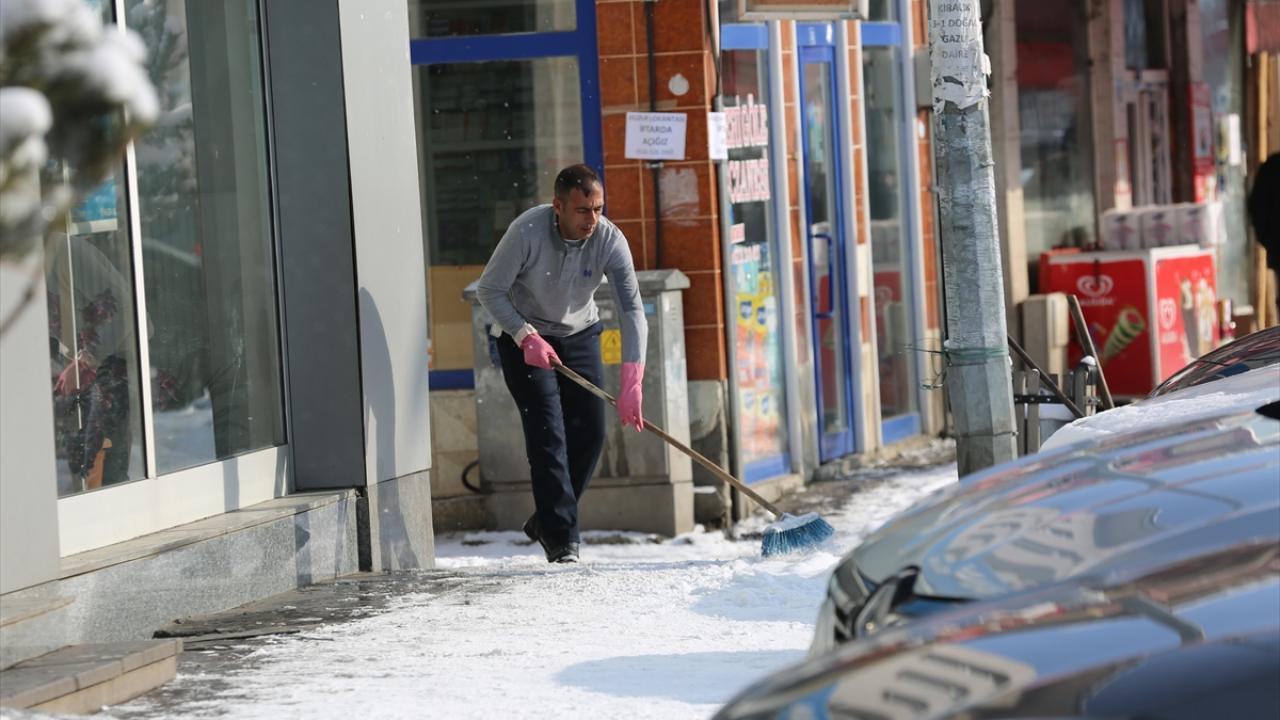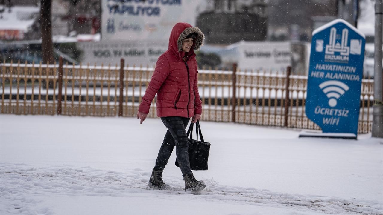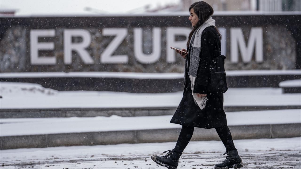 Erzurum`da gece başlayan kar, sabah saatlerinde de etkisini sürdürdü.