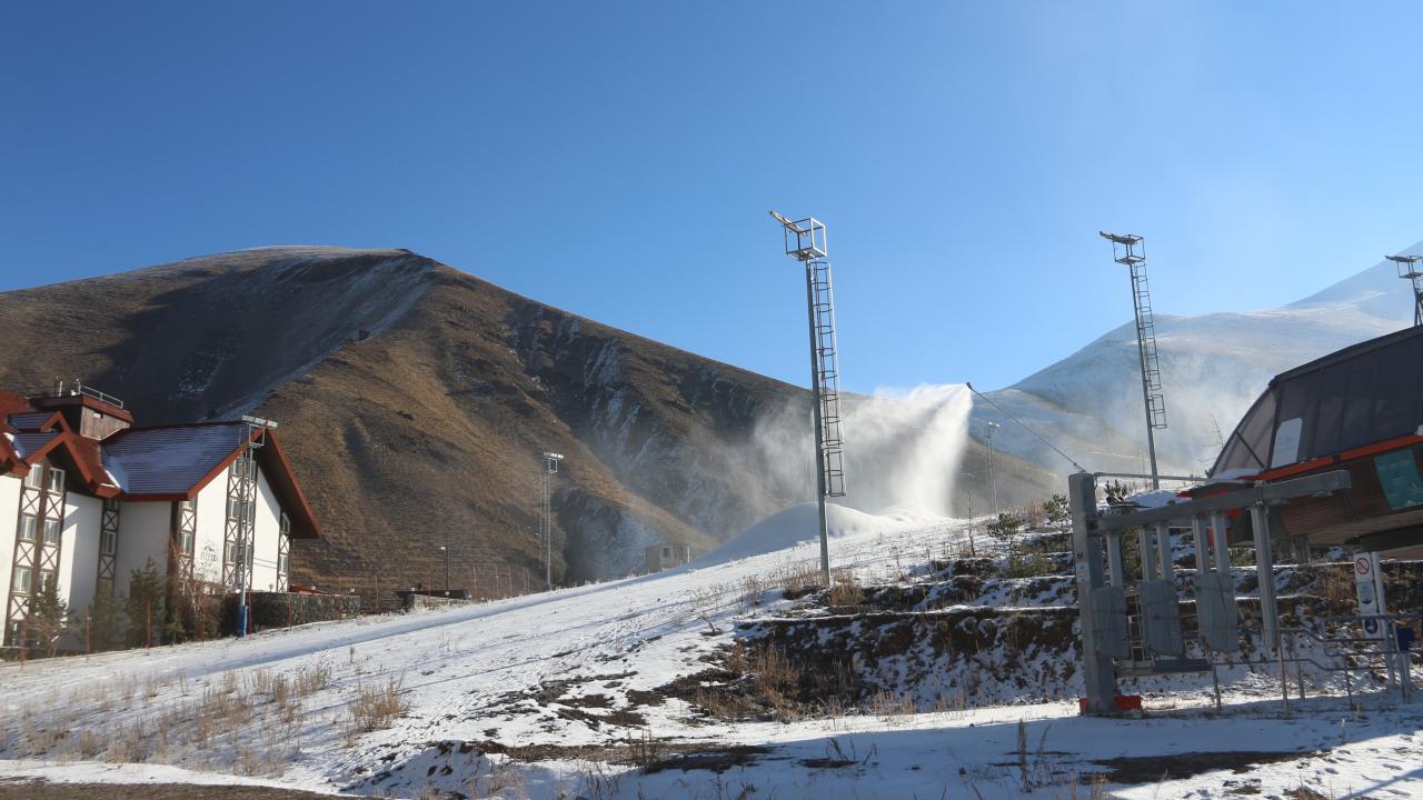 Öte yandan Türkiye`nin önemli kayak merkezleri arasında yer alan Palandöken`de yeterli düzeyde kar yağışı olmaması nedeniyle otel yetkilileri, kayak yapmak isteyen vatandaşlar için makinelerle üretilen suni karlama çalışmasına başladı.