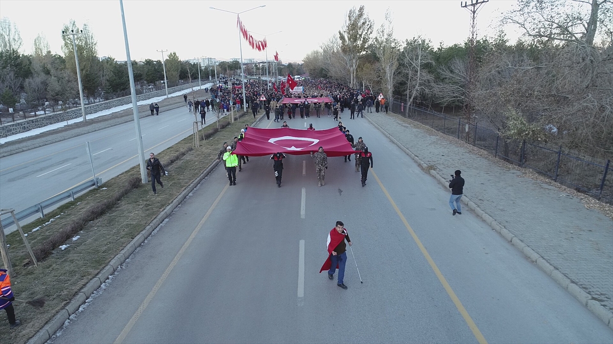 Soğuk havaya rağmen ellerinde Türk bayraklarıyla tekbirler getiren vatandaşlar ile asker ve polislerin de katıldığı yürüyüş, Aziziye Tabyaları`nda tamamlandı.