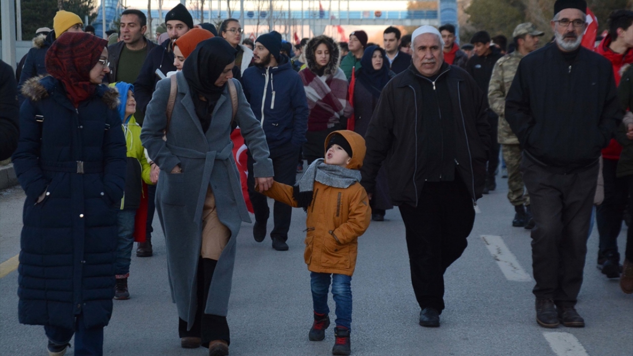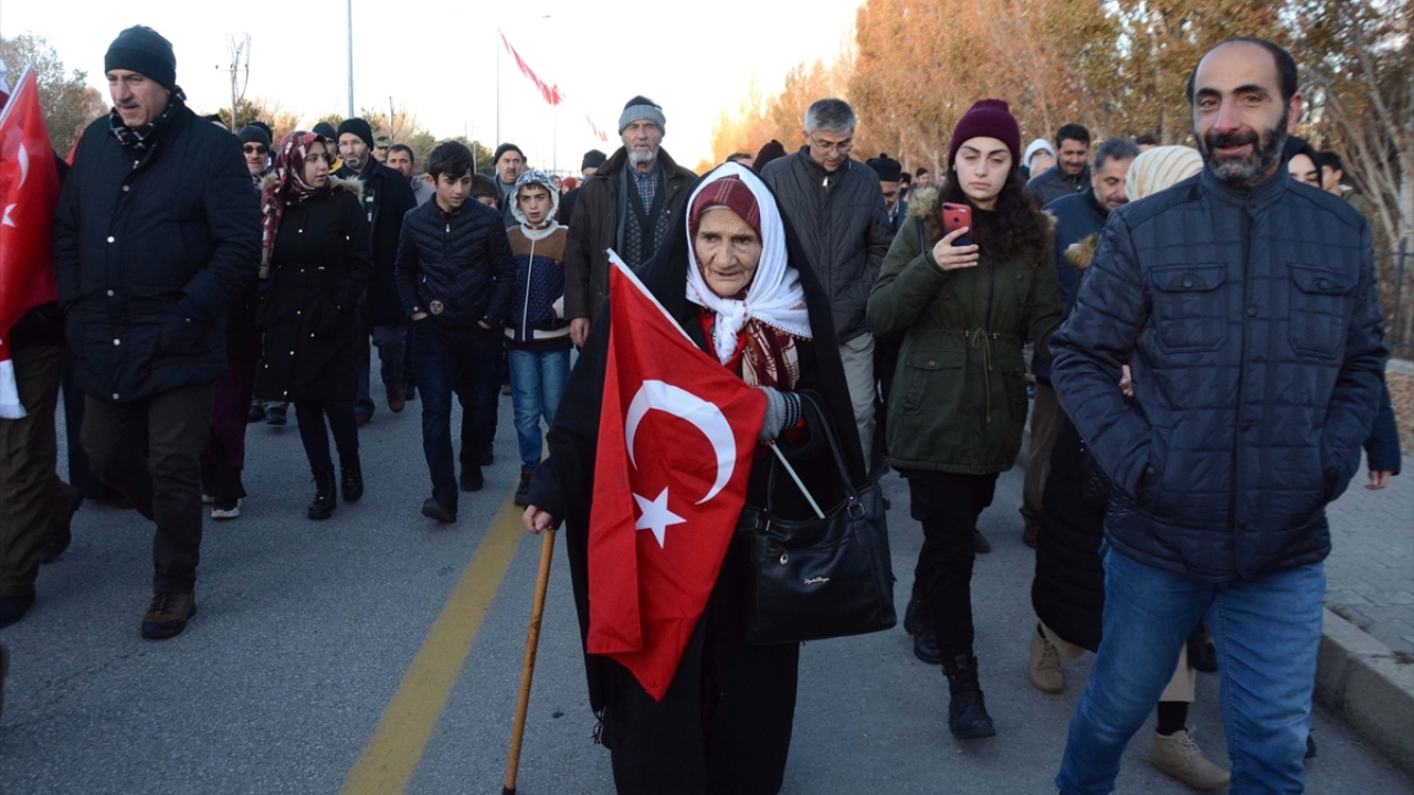 Erzurum'da genç ve yaşlı binlerce kişi, sabah namazı sonrası "93 Harbi" olarak bilinen 142 yıl önceki Osmanlı-Rus Savaşı'nın yaşandığı Aziziye Tabyaları'na yürüdü.