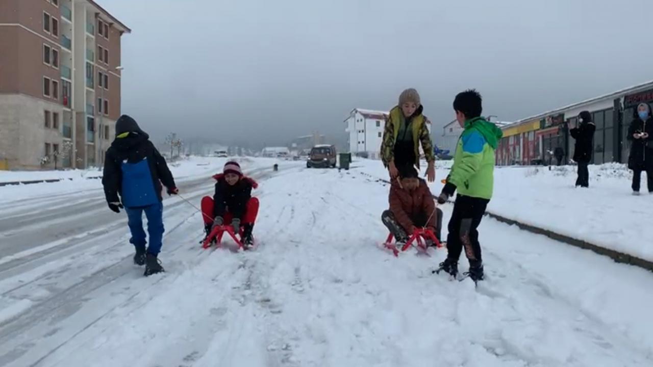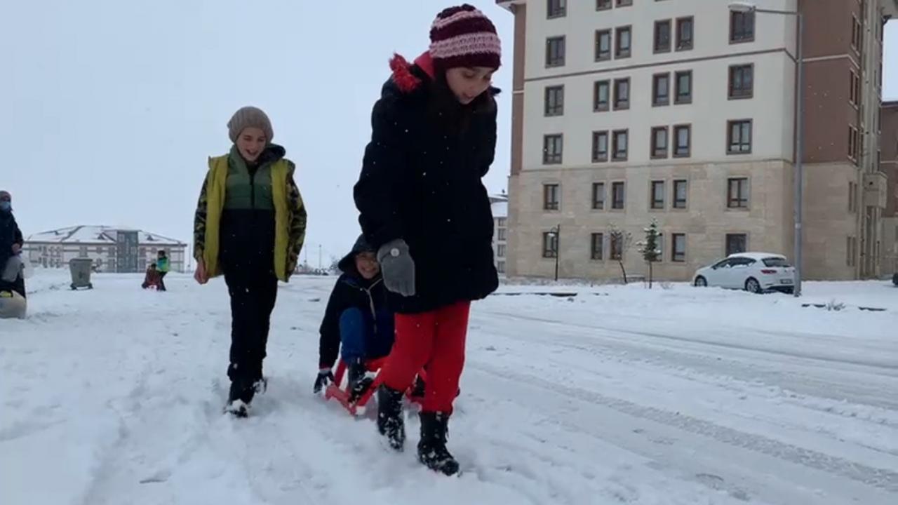 Öte yandan, Sarıkamış’ta çocukların kızaklarla kaymaları renkli görüntülere sahne oldu. O anlar kameralara yansıdı.