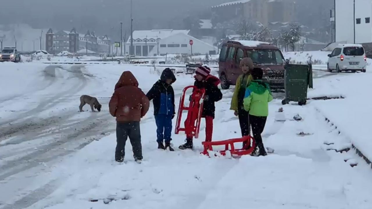 Kars’ın Sarıkamış ilçesinde gece başlayan kar yağışı en çok çocuklara yaradı. Sabah erken saatlerde okullarına gitmek için uyanan çocuklar, karı görünce kendilerini dışarı attı.