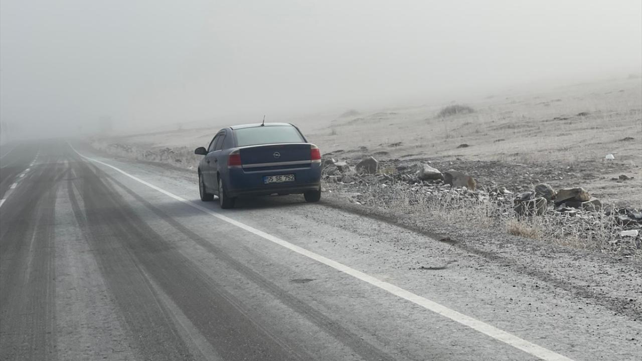Kars-Erzurum kara yolunda sis nedeniyle görüş mesafesi 10 metreye kadar düştü, sürücüler ilerlemekte güçlük çekti.