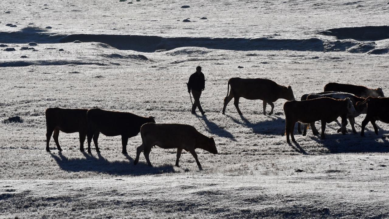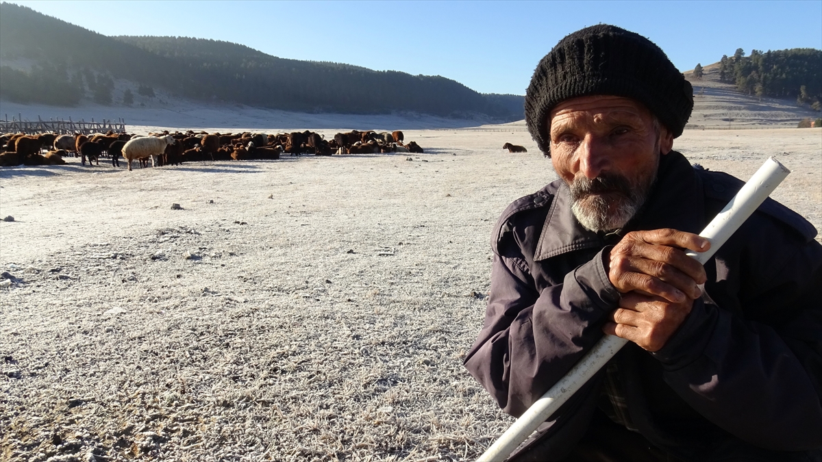 Besici Gıyas Budak, havaların geceleri soğuduğunu belirterek, "Sabah erken hayvanları otlatmaya çıkardık, her taraf bembeyaz olmuş. Şimdi kırağının kalkmasını bekliyoruz, sonra otlatmaya çalışacağız." dedi.