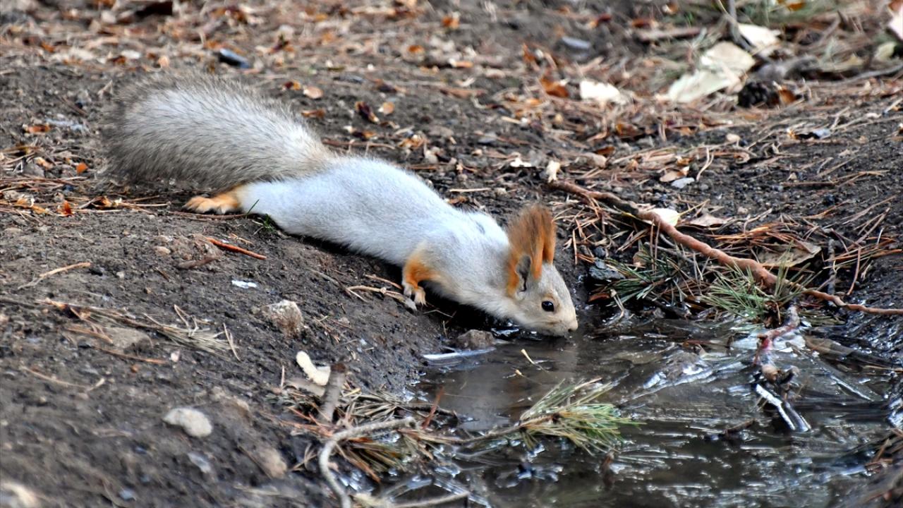 Bölgede kızıl sincaplar ile kuşların yiyecek aradığı görüldü.